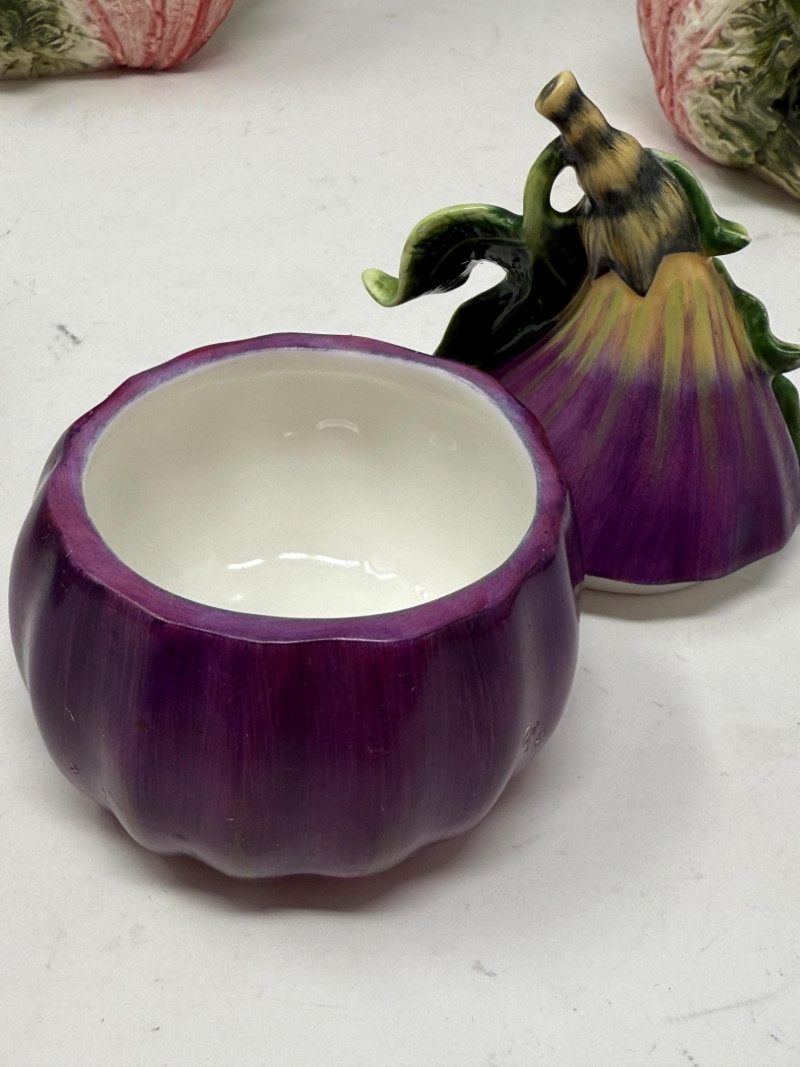 Fitz & Floyd English Garden China Canisters Set & Fig Trinket Box. Largest is 6.5x10” Minor chipping. See pics 6 Pieces canister set and Classic Fig Trinket Box