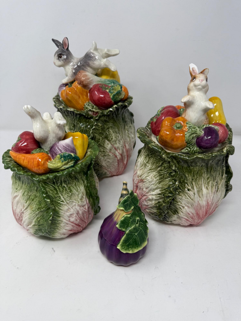 Lot # 214 - Fitz & Floyd English Garden Canisters Set & Fig Trinket Box