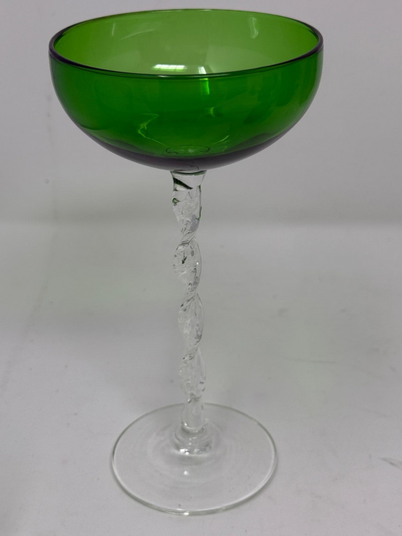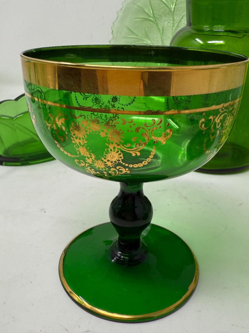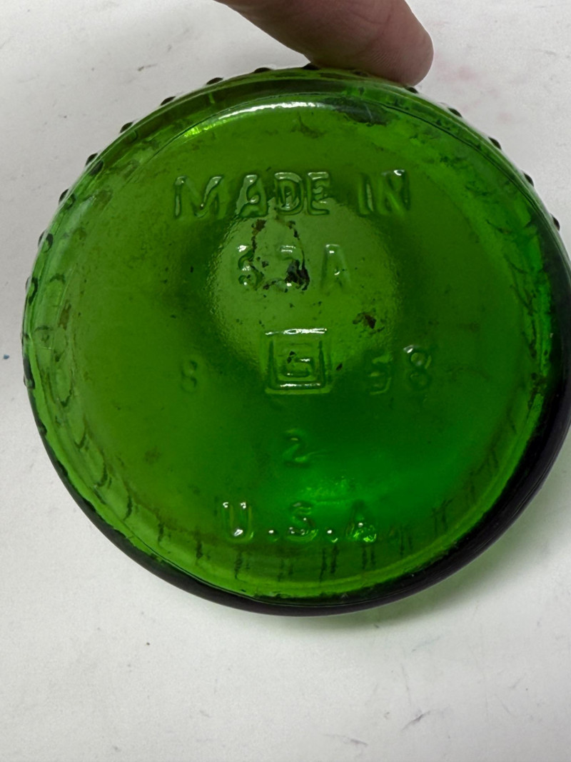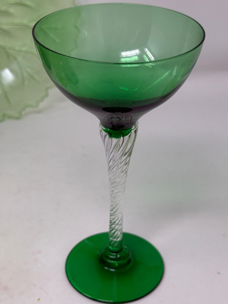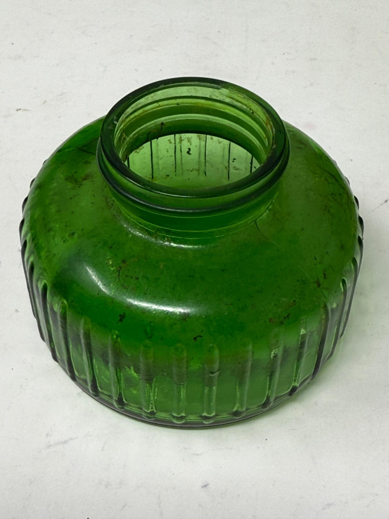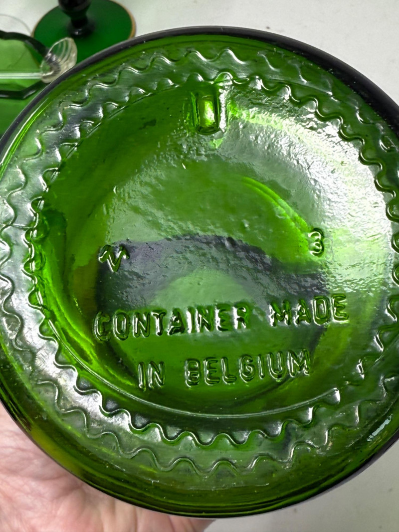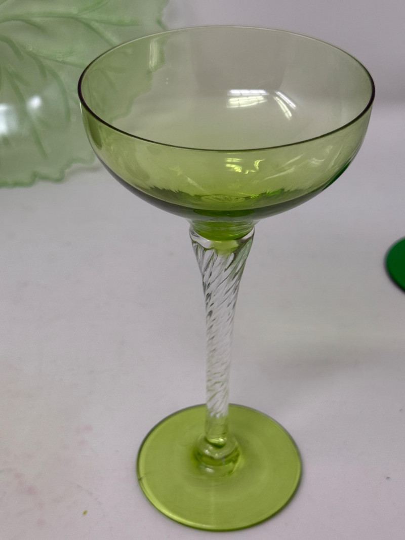 Fenton Clamborn Green Glass Mule Shoe Spoon Rest Holder and clam shaped glass spoon. Green Glass - No Two Pieces The Same! 3 Uranium / Vaseline Glass. See pics
