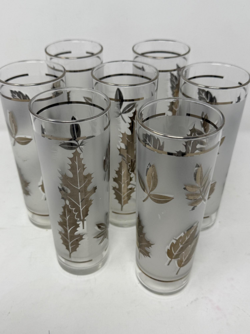 7 MCM Libby Silver Leaf highball glasses 2.5”x7”