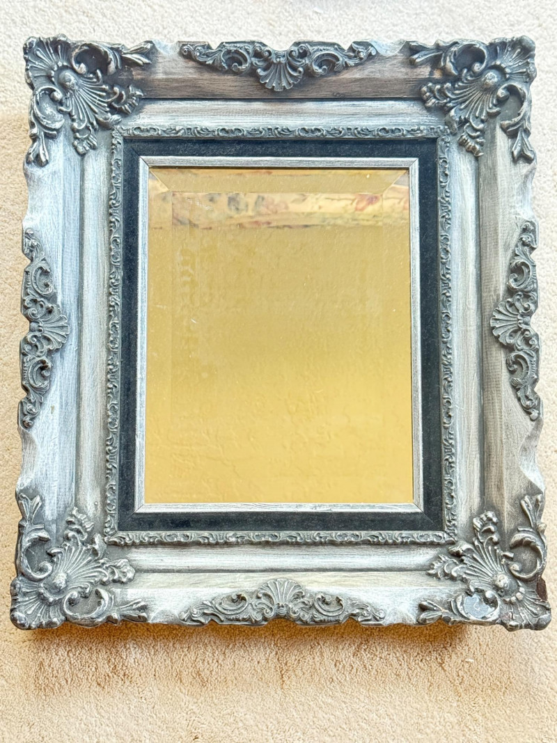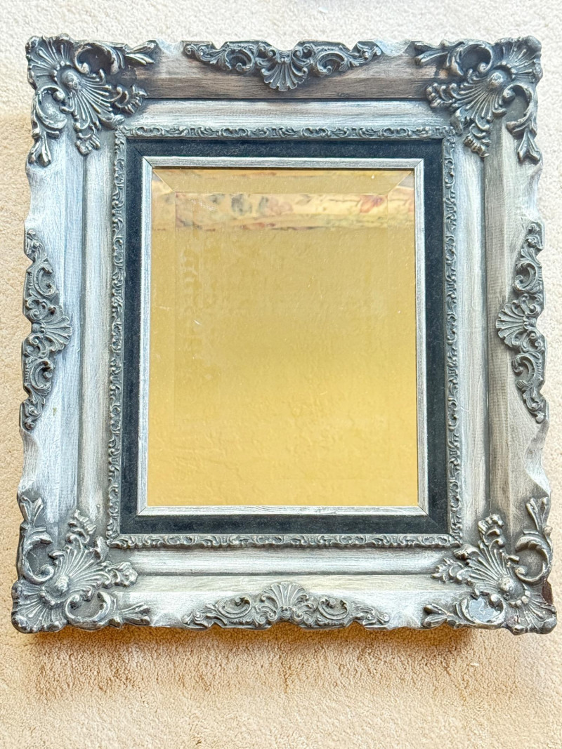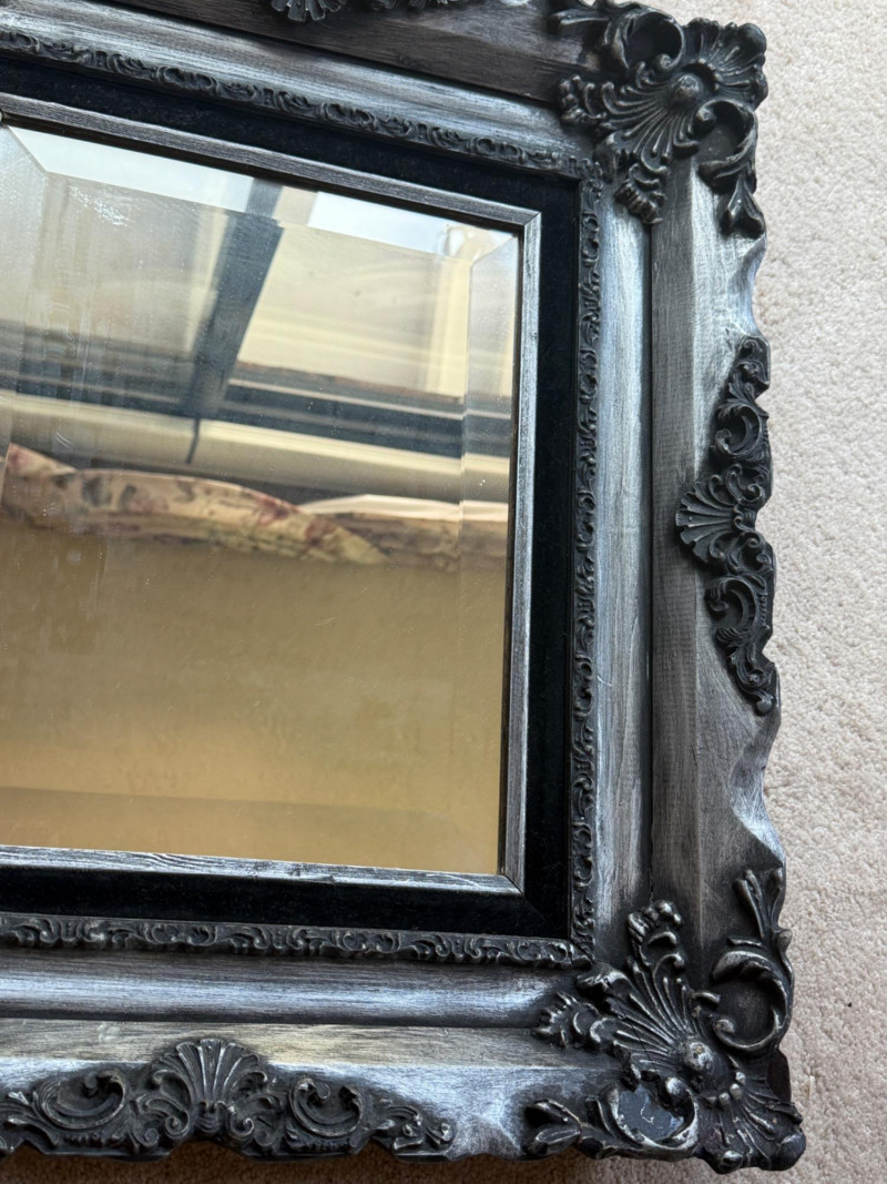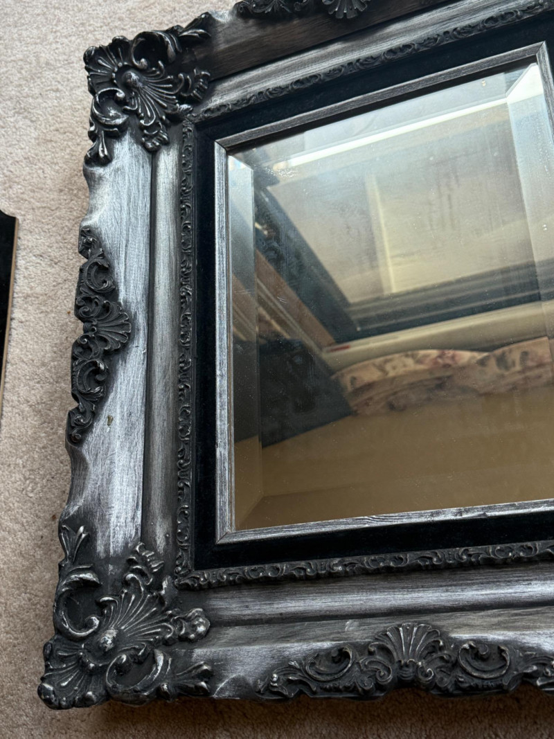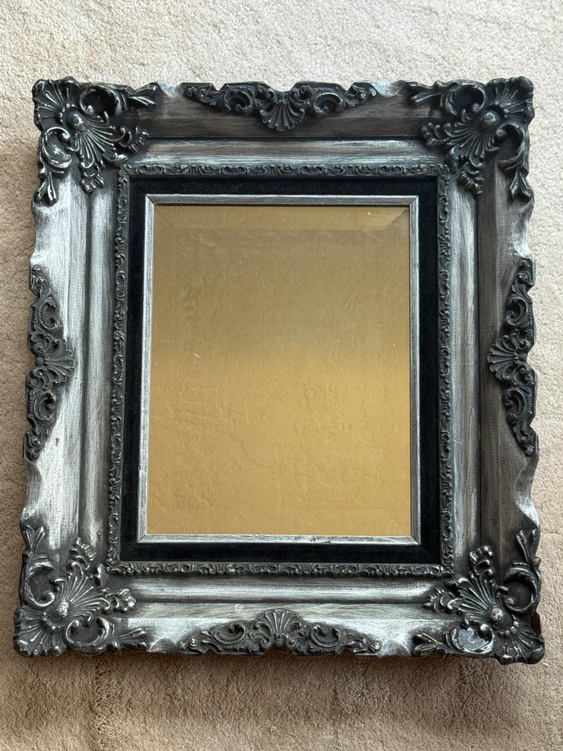 Stunning Black and Silver Framed Mirror Frame is 20x22.75” Mirror opening is 11x14”