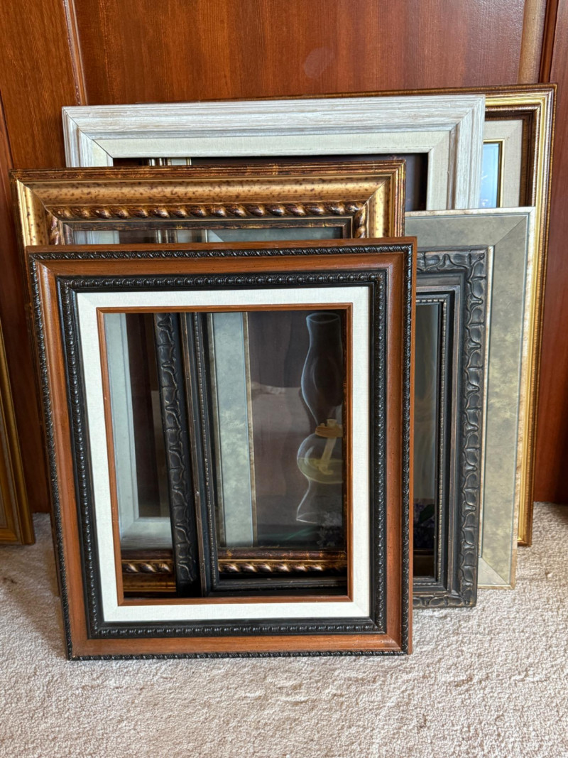 6 Canvas Frames 3 fit 11x14” 2 fit 16x20” 1 is 13x17” with glass Nice collection. A lot of them made in Mexico.