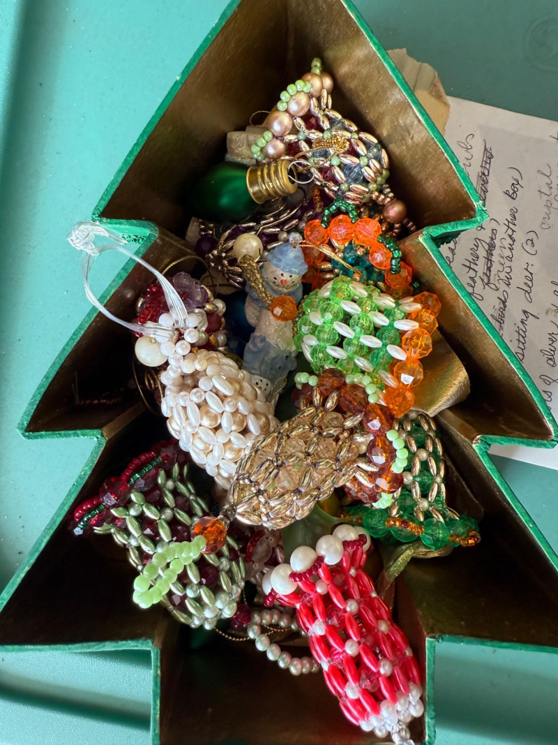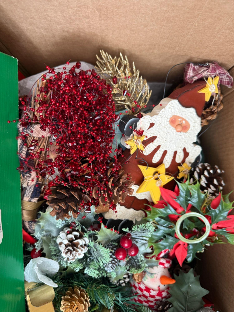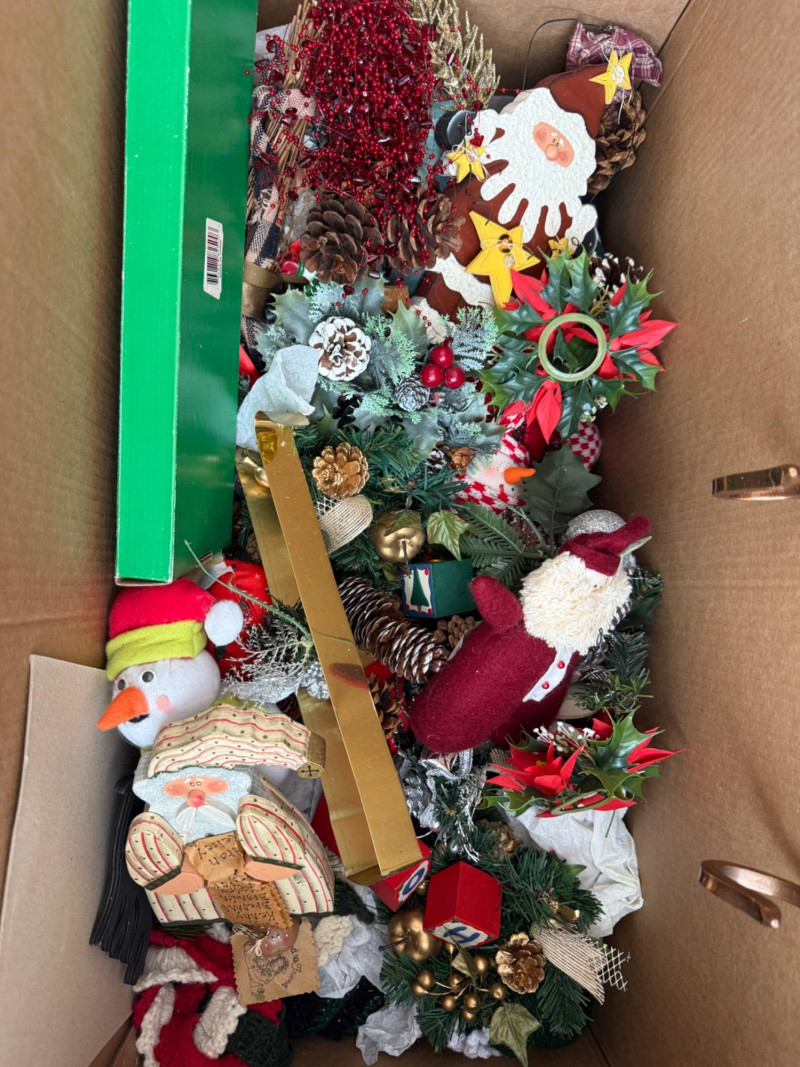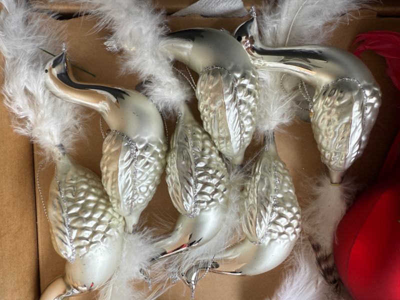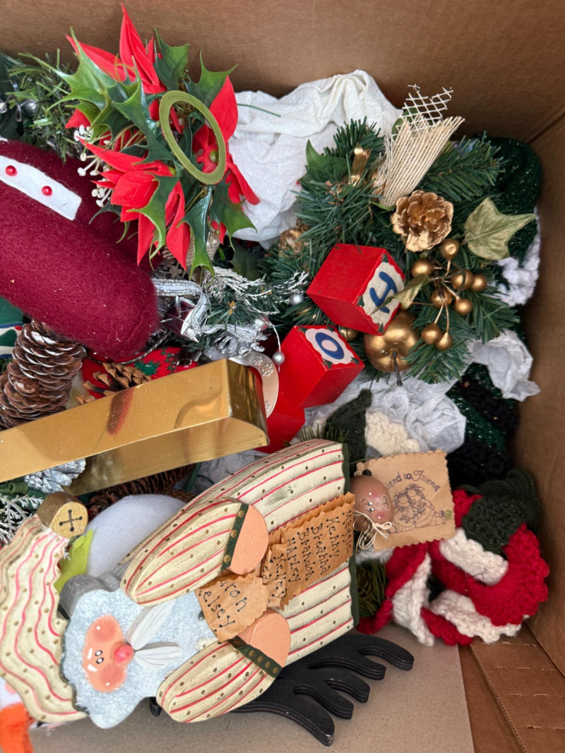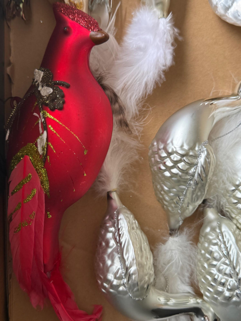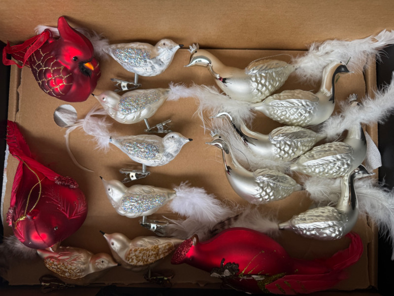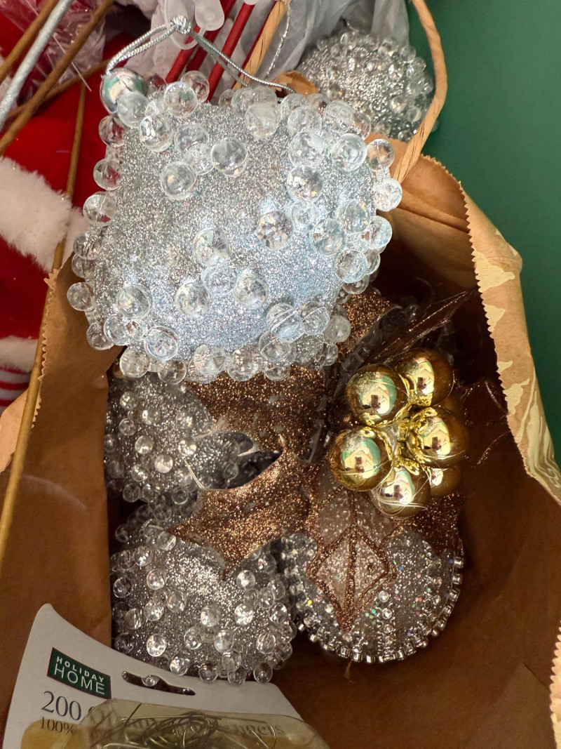 Christmas Decor Collection Brass Hangers Vintage blown glass ornaments Lighted wreath with storage bag Caroler's Small decorations Exterior rope lights