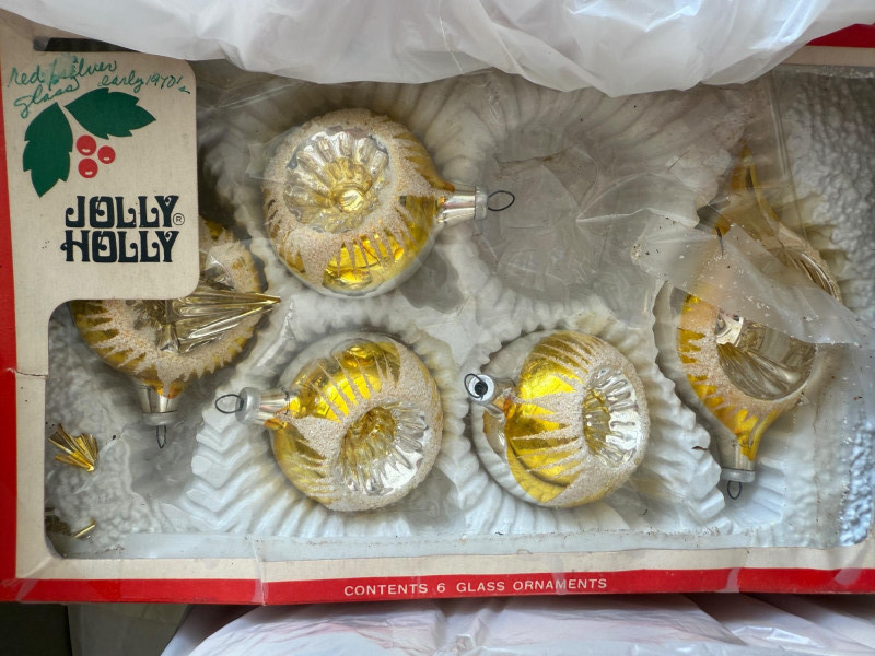 Lot # 250 - Christmas Decor - Brass Hangers - Glass Ornaments - Globe