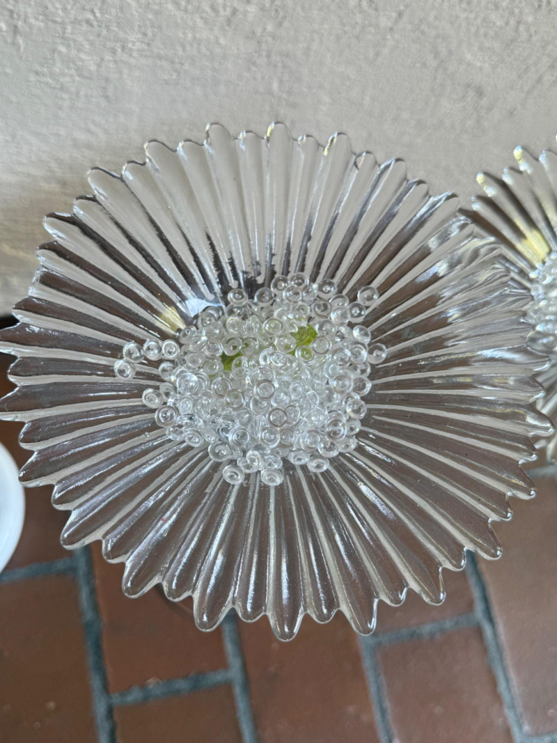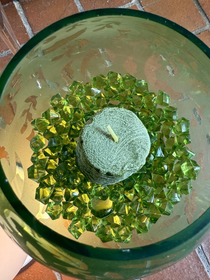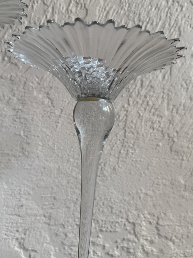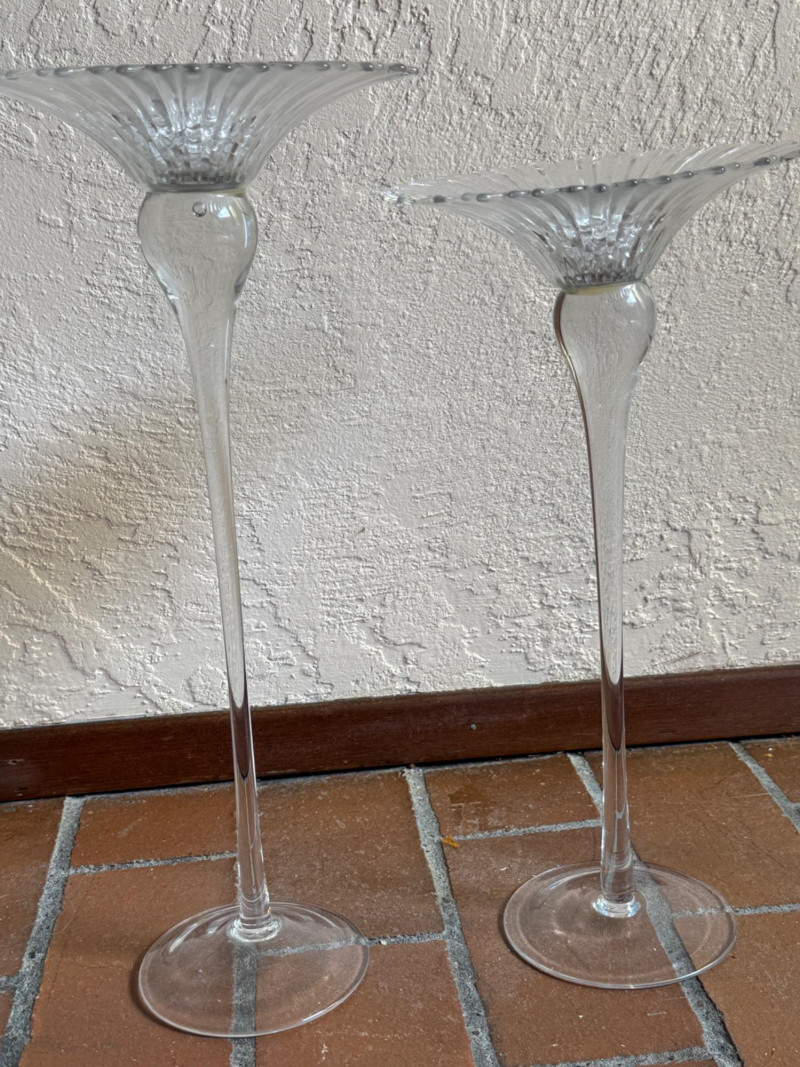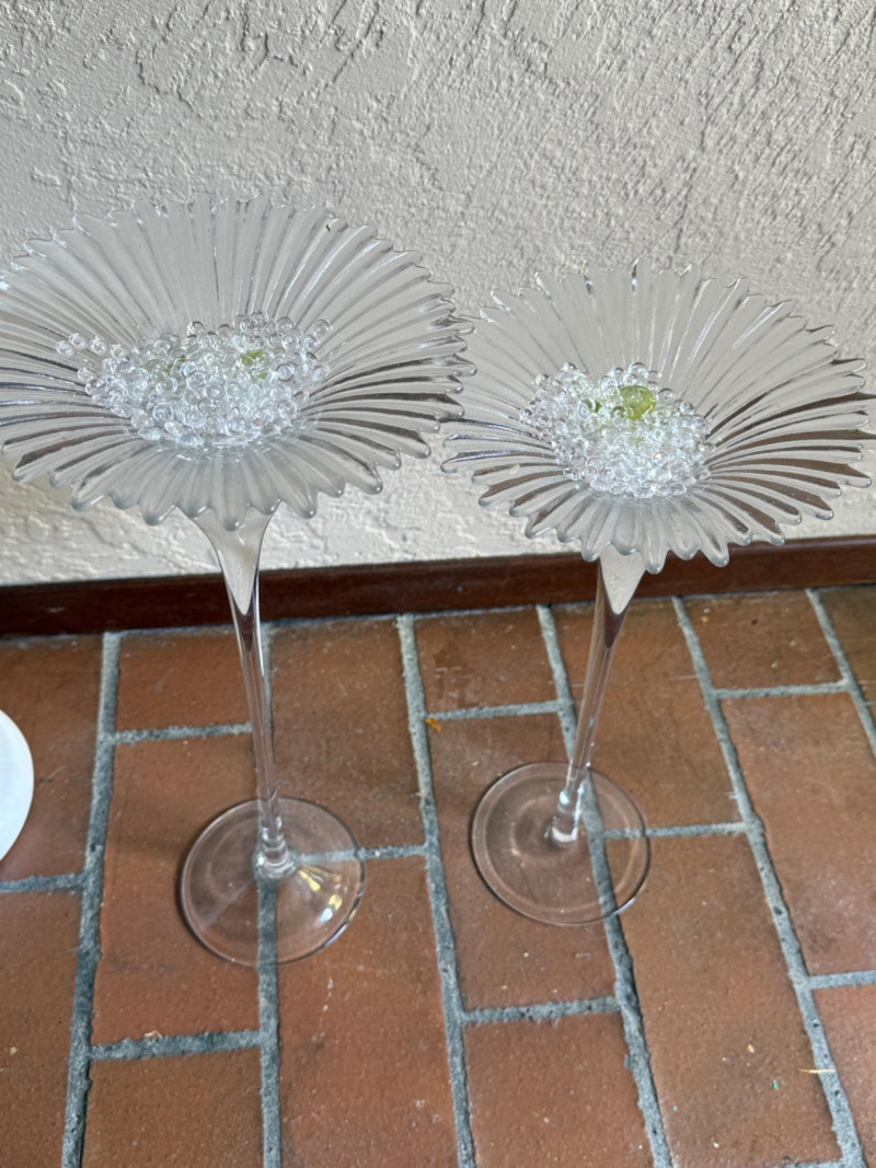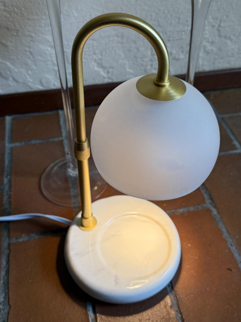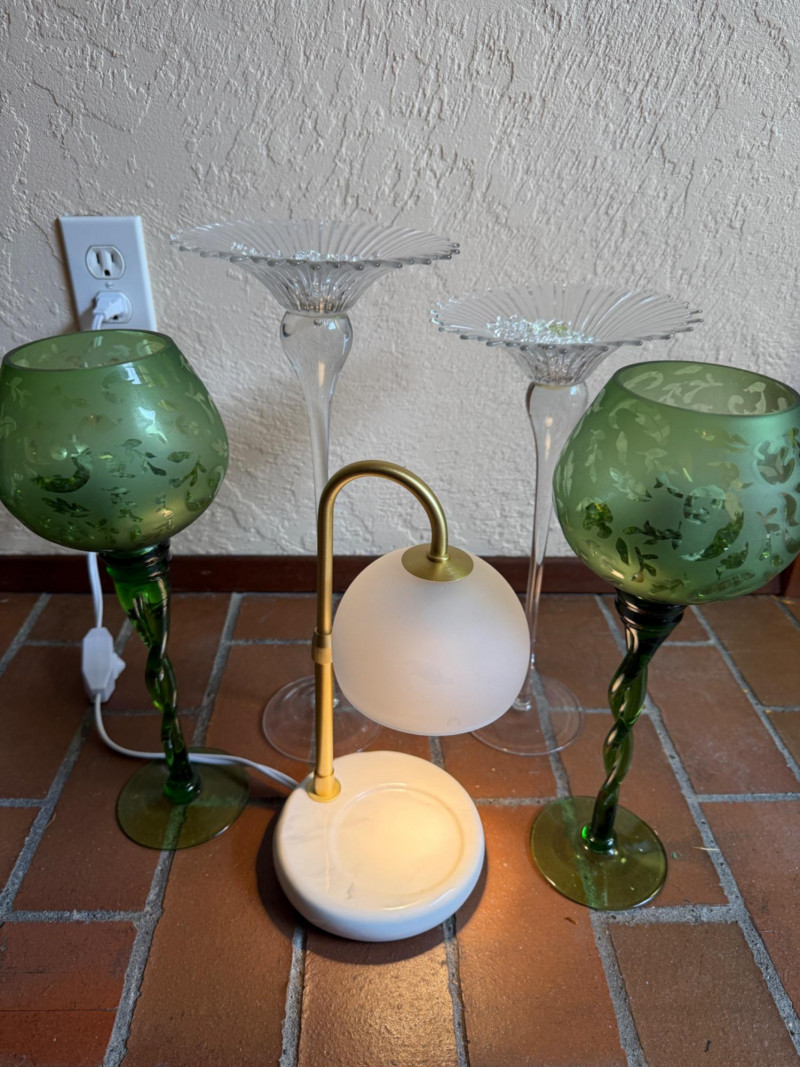 (2) Candle Holder Sets and Lighted Warmer 2 Green twisted stem holders are 5x14” Clear Daisies are 7x14” and 7x16” Candle warmer is 6x12” with in-line dimmer switch. Brass tone with frosted glass and ceramic marble look base.