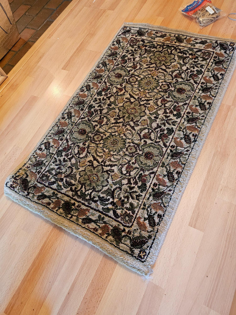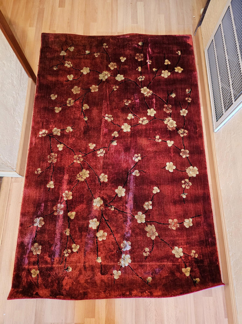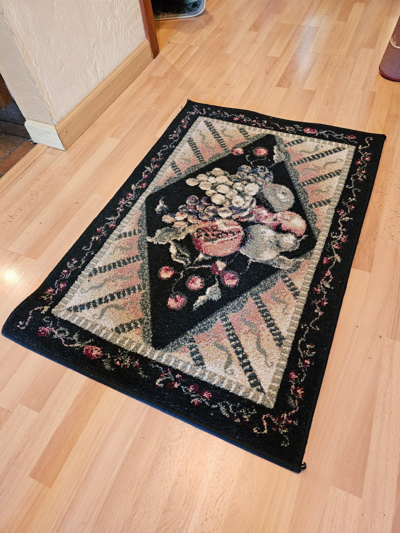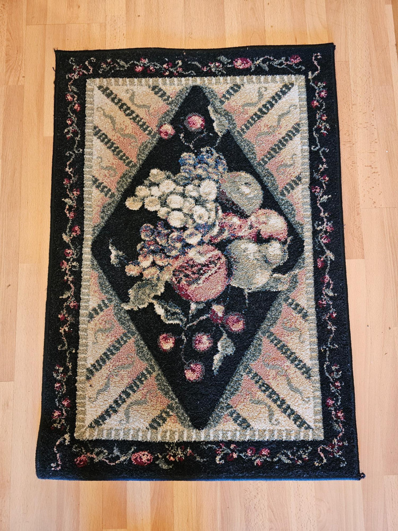 (3) Rugs New Chambord Collection - Deep Red Floral 67" x 43" Tracy Porter By Shaw Rugs - Fruit Rug With Black Border 39.5" x 27" Light & Dark Floral 40.5" x 24" Rugs are in good used condition! Comes with floor protection