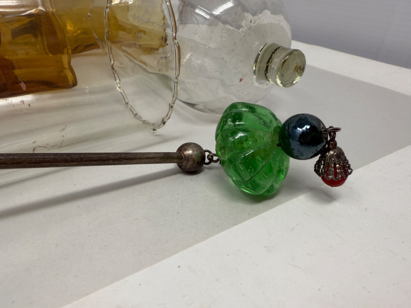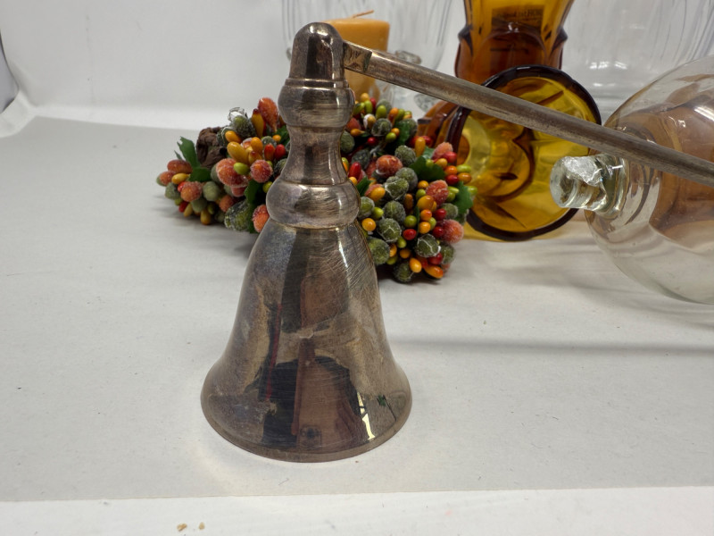Lot # 280 - Vintage Candle Holders - Silver Snuffer - Etched Pillar Vases
