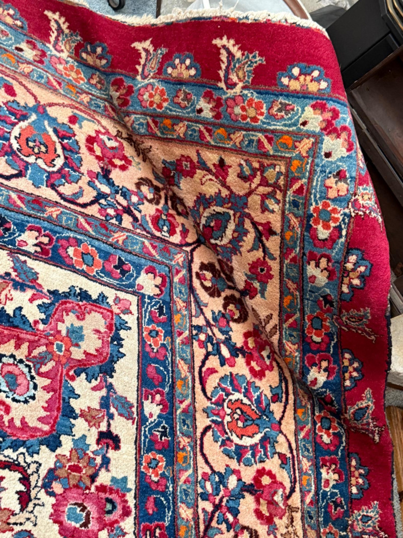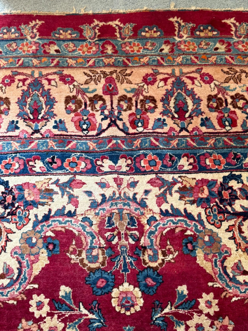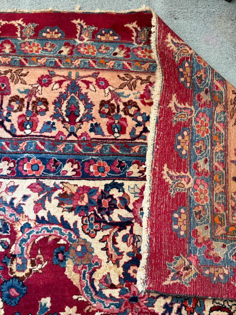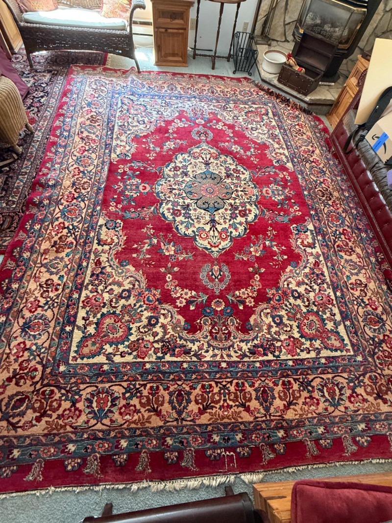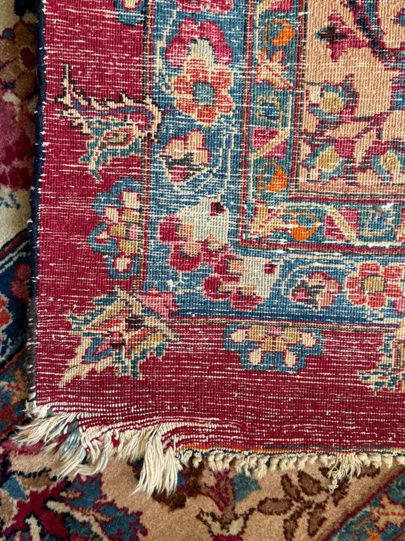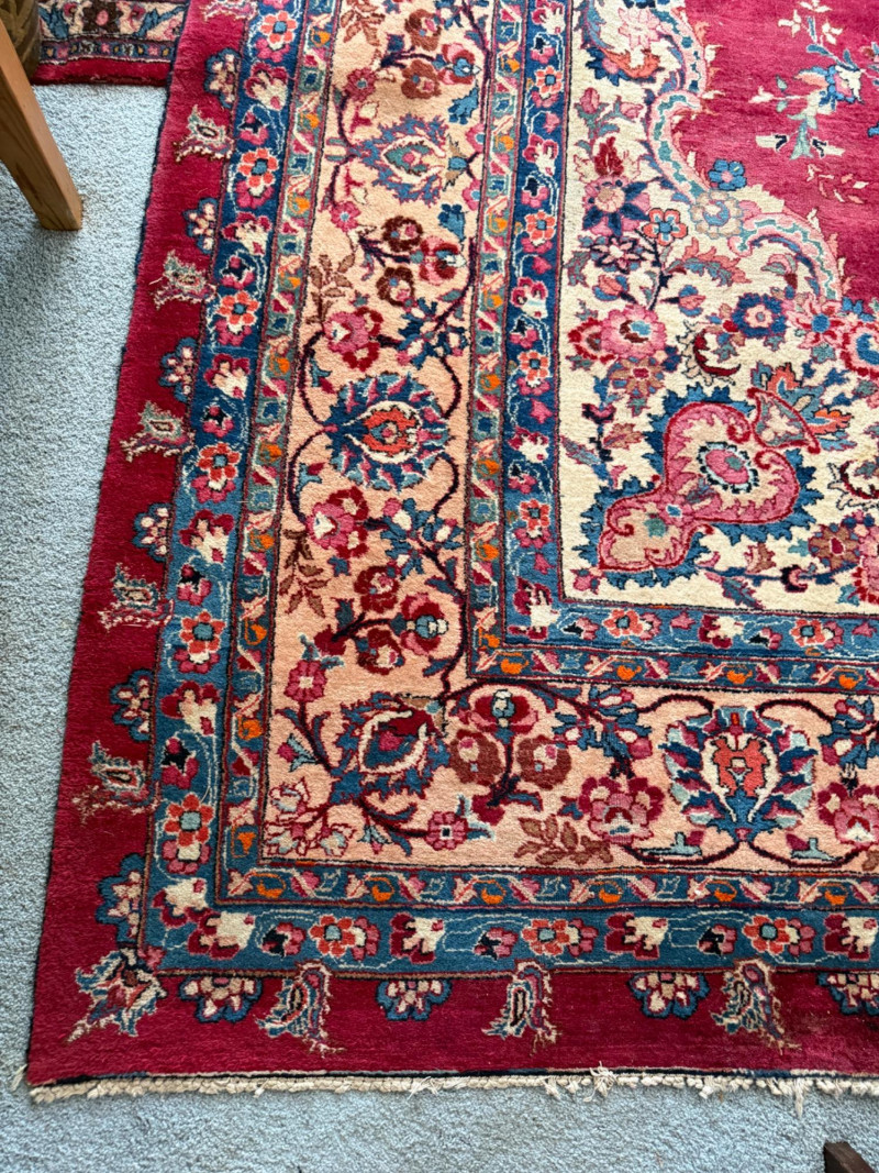 9’6”x13’ Room size hand woven Pakistani rug Some areas said heavy wear and knots have little fringe. See pics.