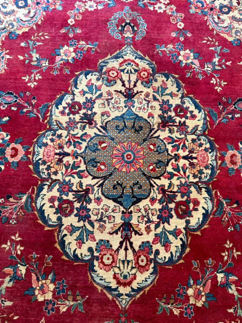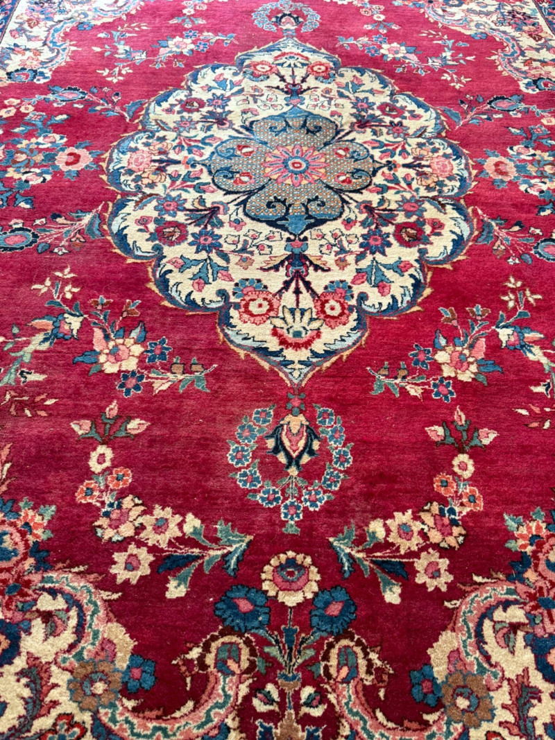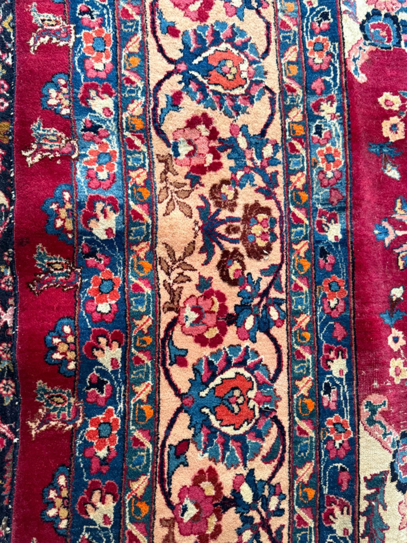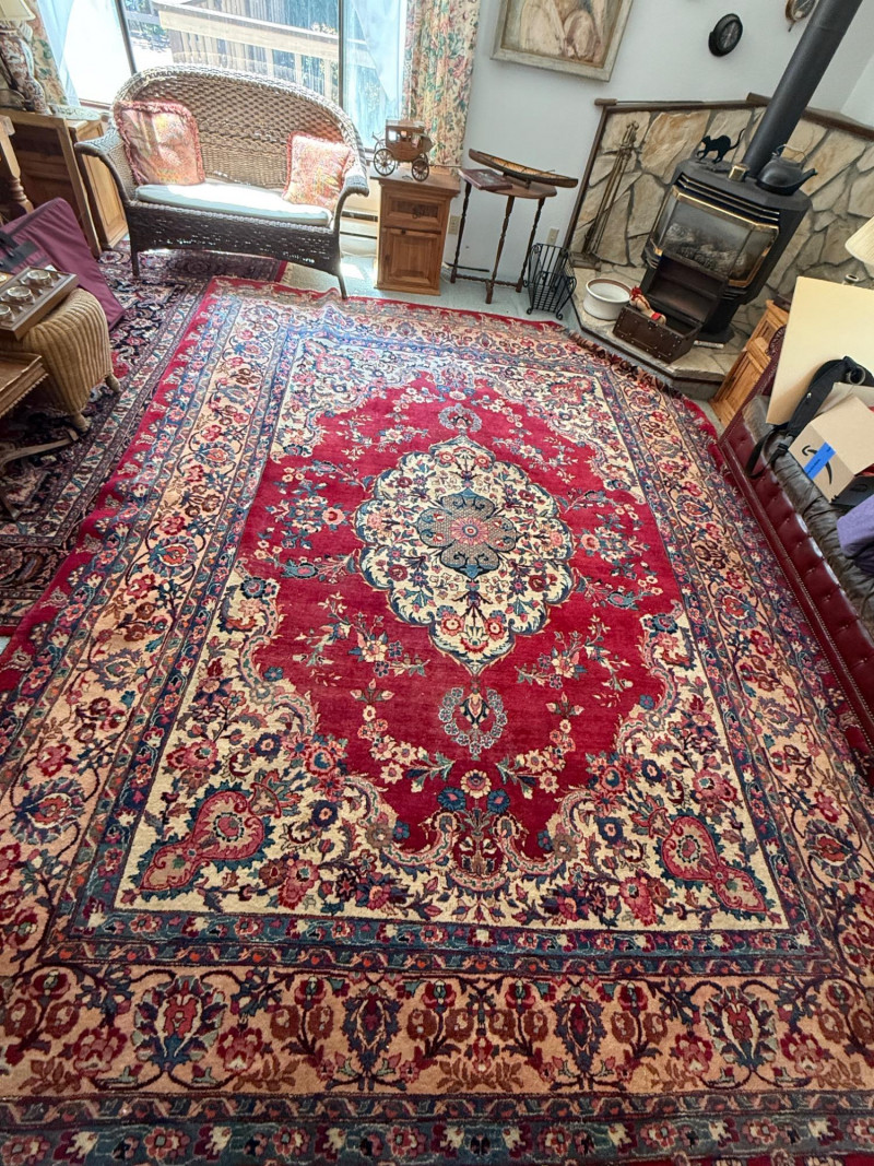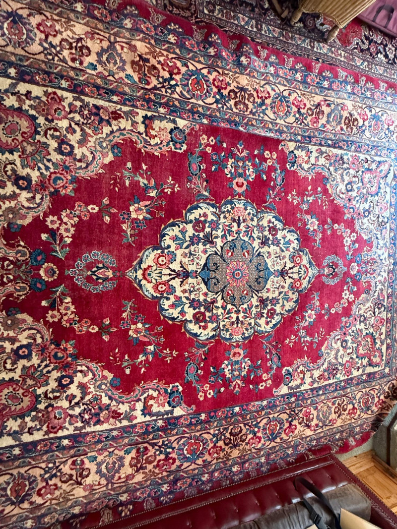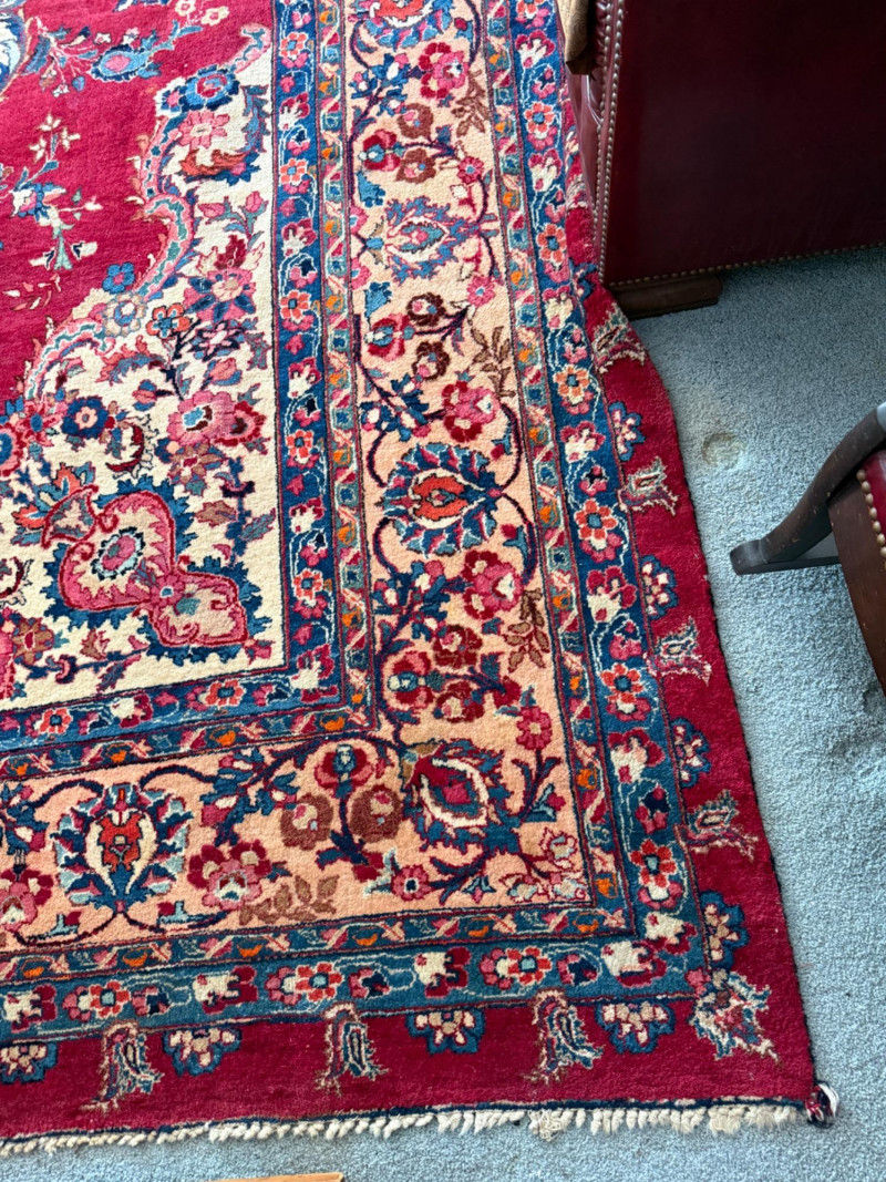 9’6”x13’ Room size hand woven Pakistani rug Some areas said heavy wear and knots have little fringe. See pics.