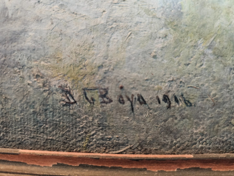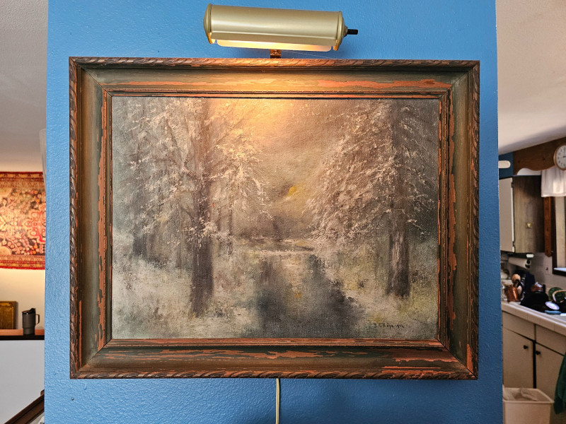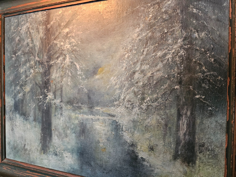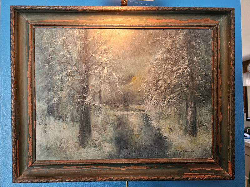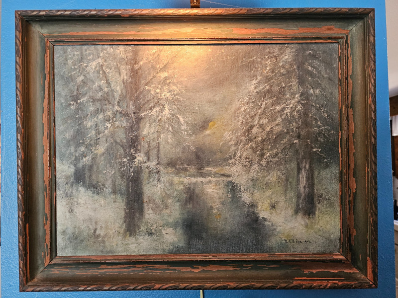 Artist-Signed Winter Landscape Framed Oil Painting In 1916