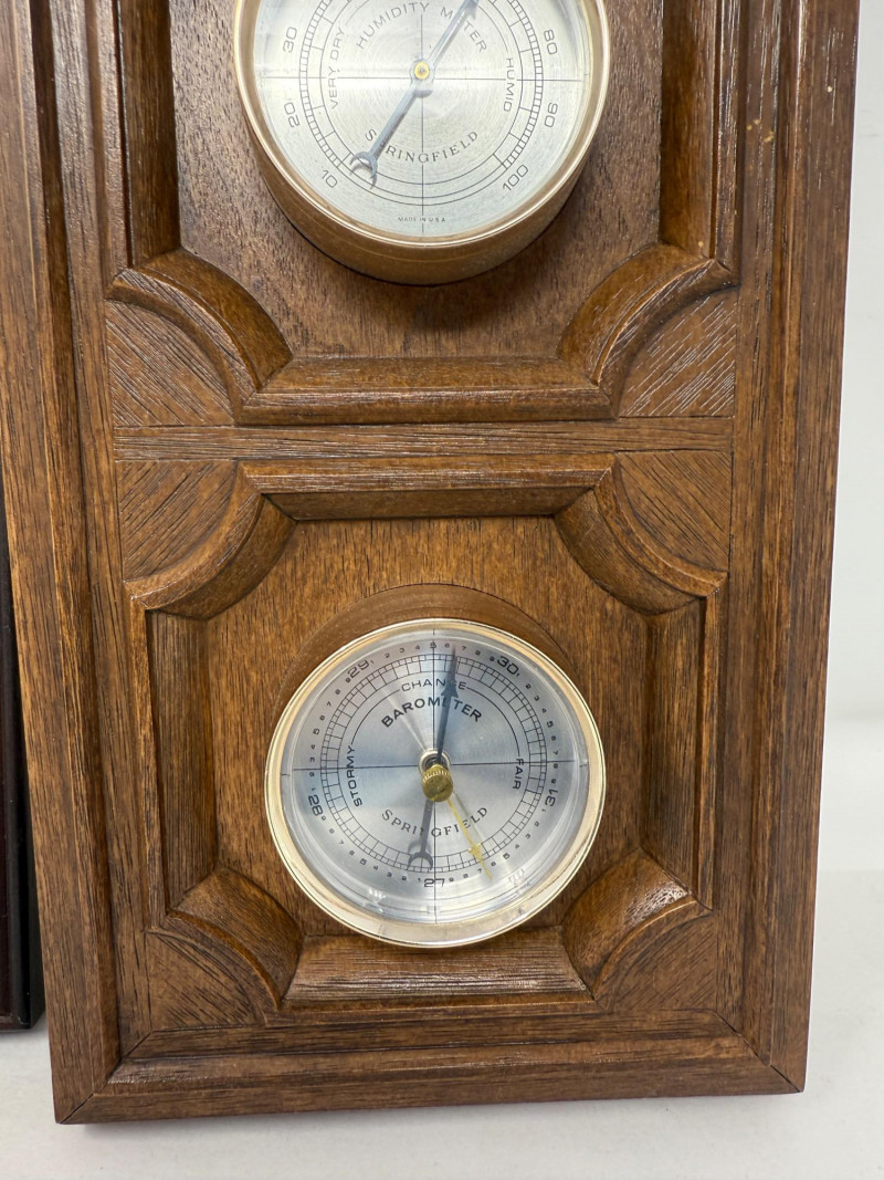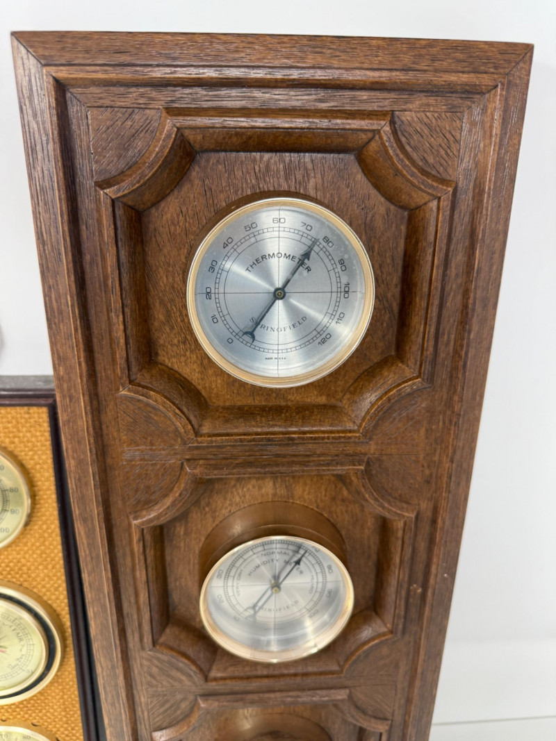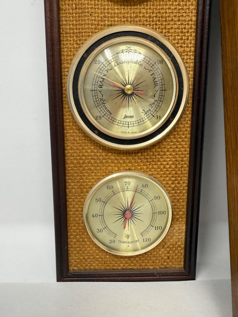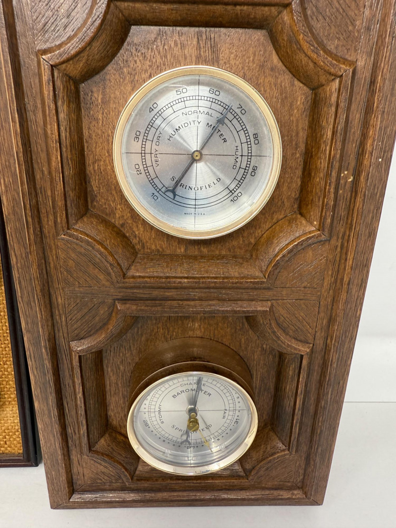 (2) Weather Centers Jason brand wood frame with woven front is 12.5x4” Larger plastic Springfield brand is18.75x8.5”