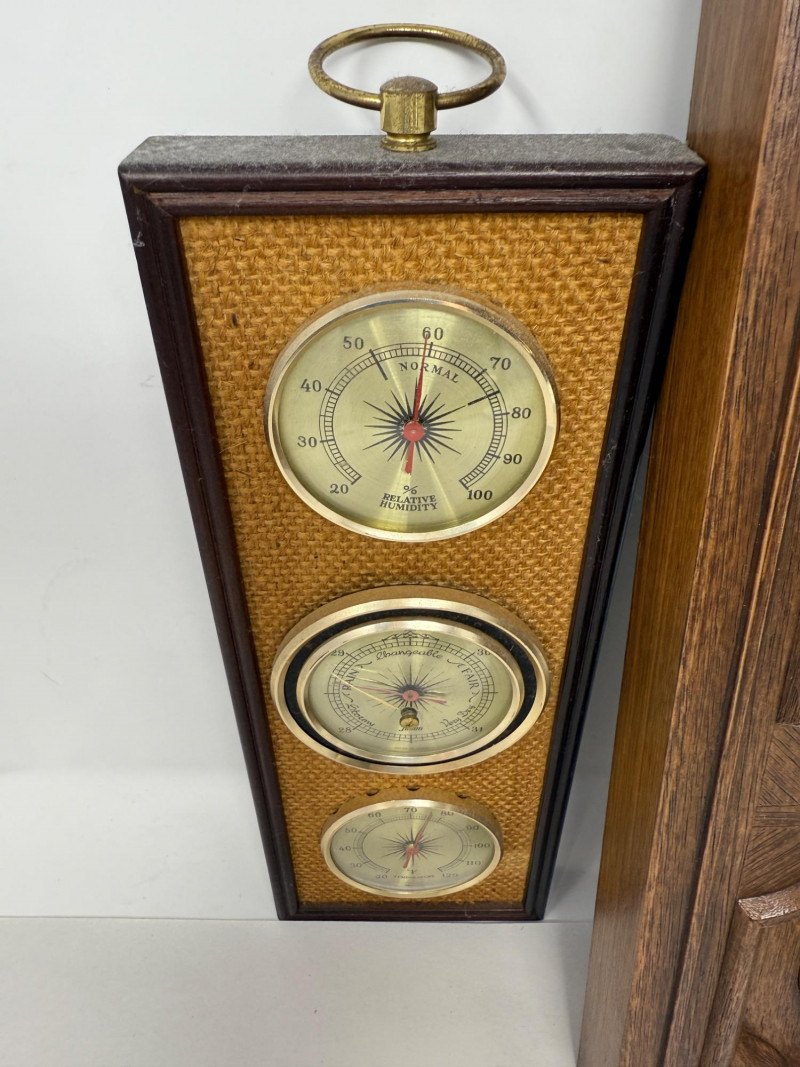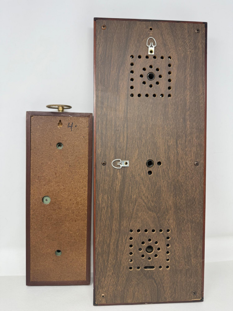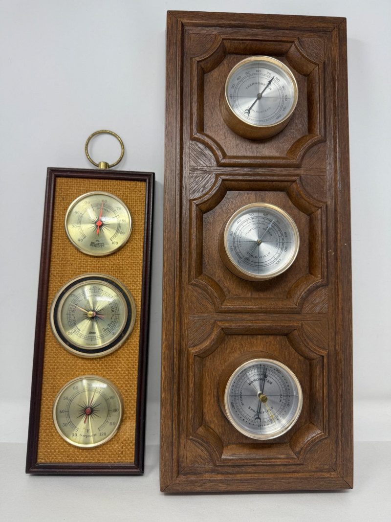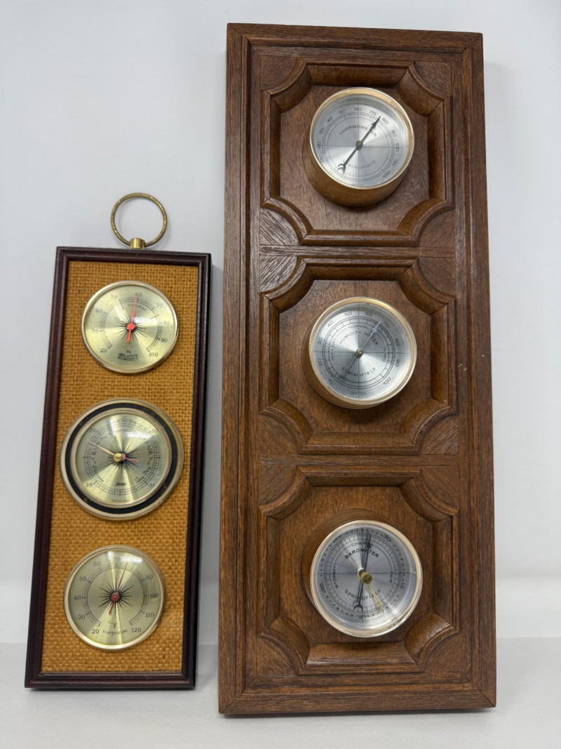 (2) Weather Centers Jason brand wood frame with woven front is 12.5x4” Larger plastic Springfield brand is18.75x8.5”