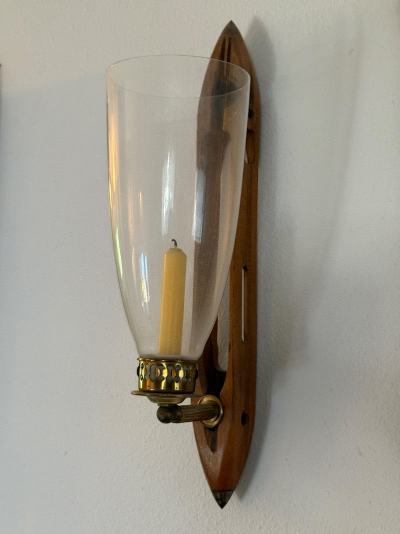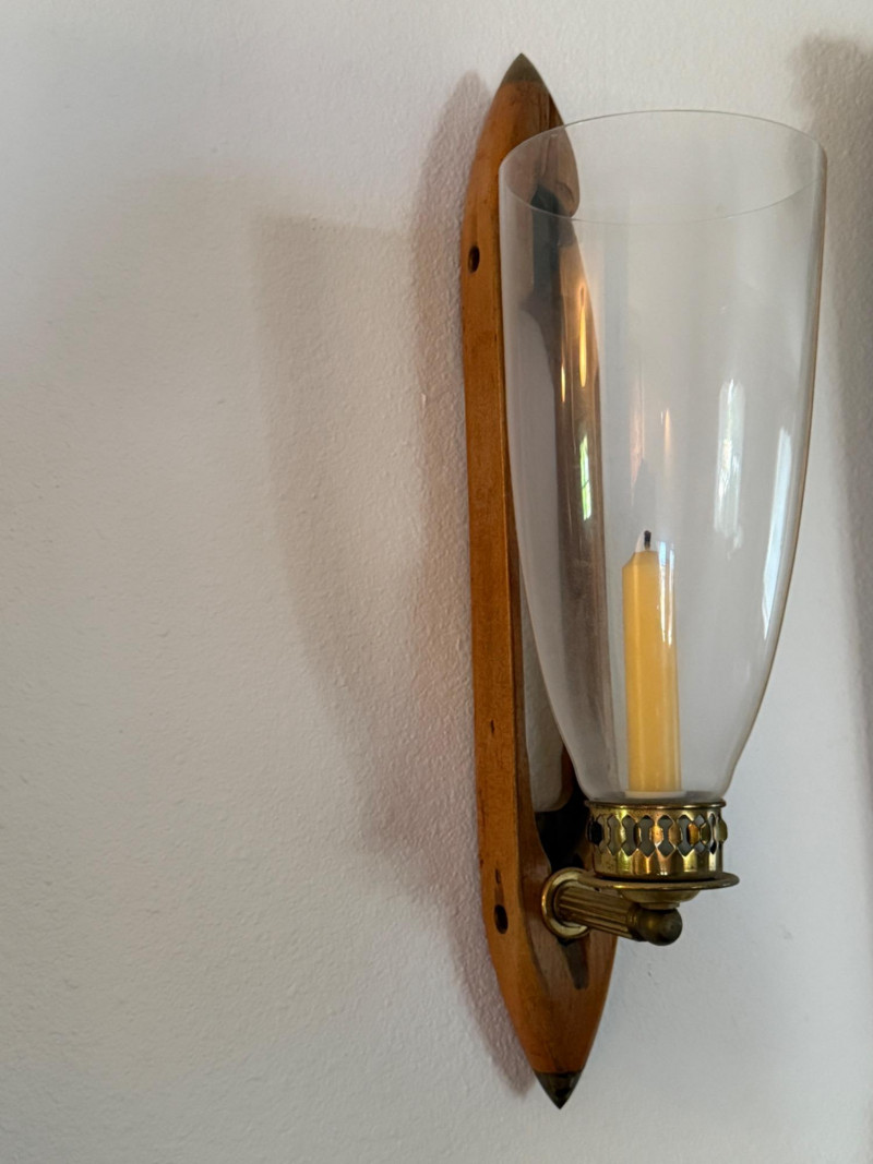 Vintage Hurricane Candle Sconces 18x2” with 4.75” glass.