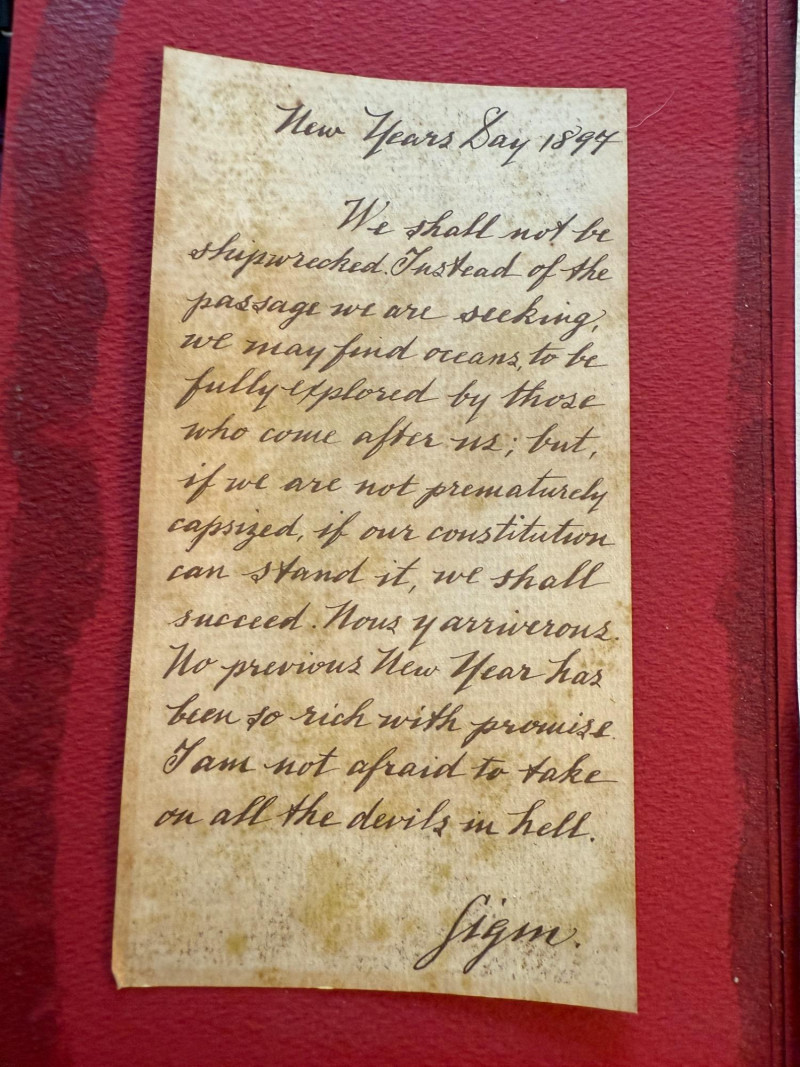 Sigmund Freud Letter - 1874 New Year Resolution - Signed Drawing A 1874 handwritten “New Year Resolution” by Sigmund Freud. These were under glass on the red background. A tributary to Mr Freud.