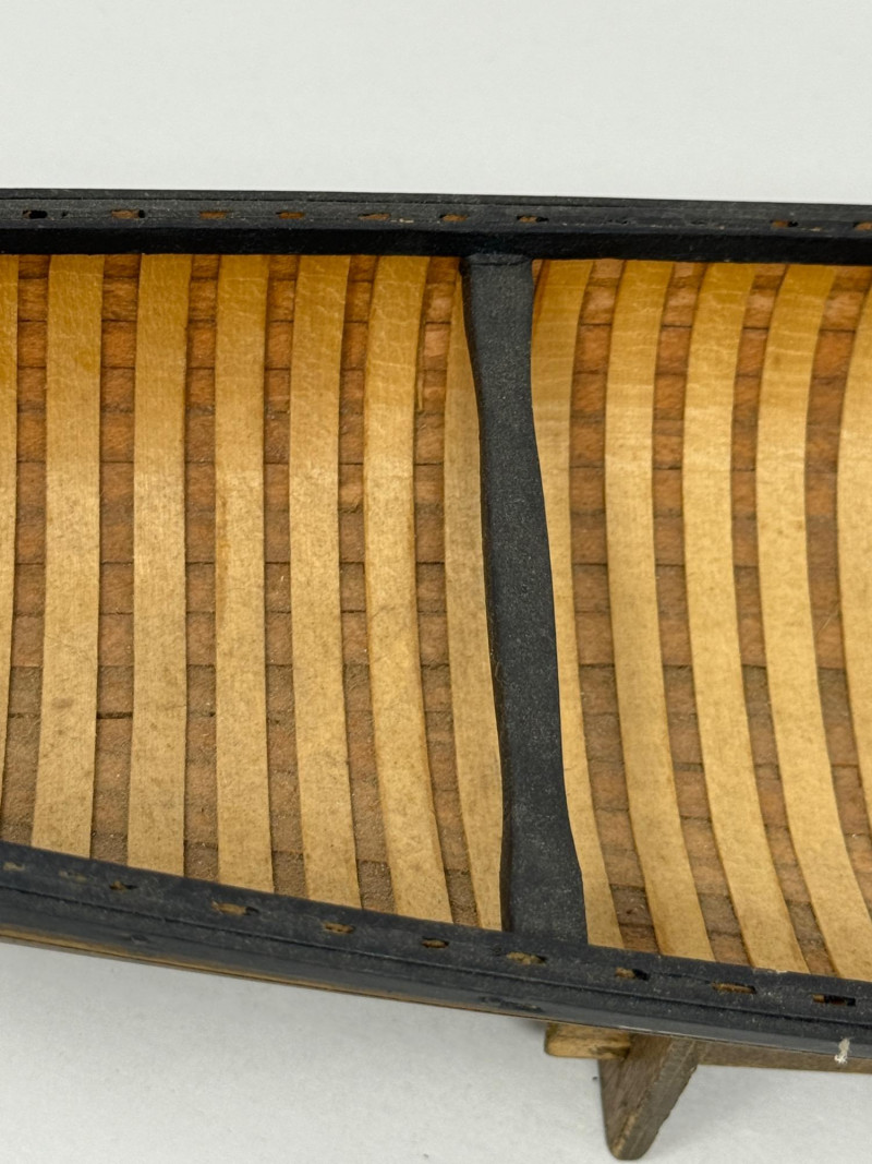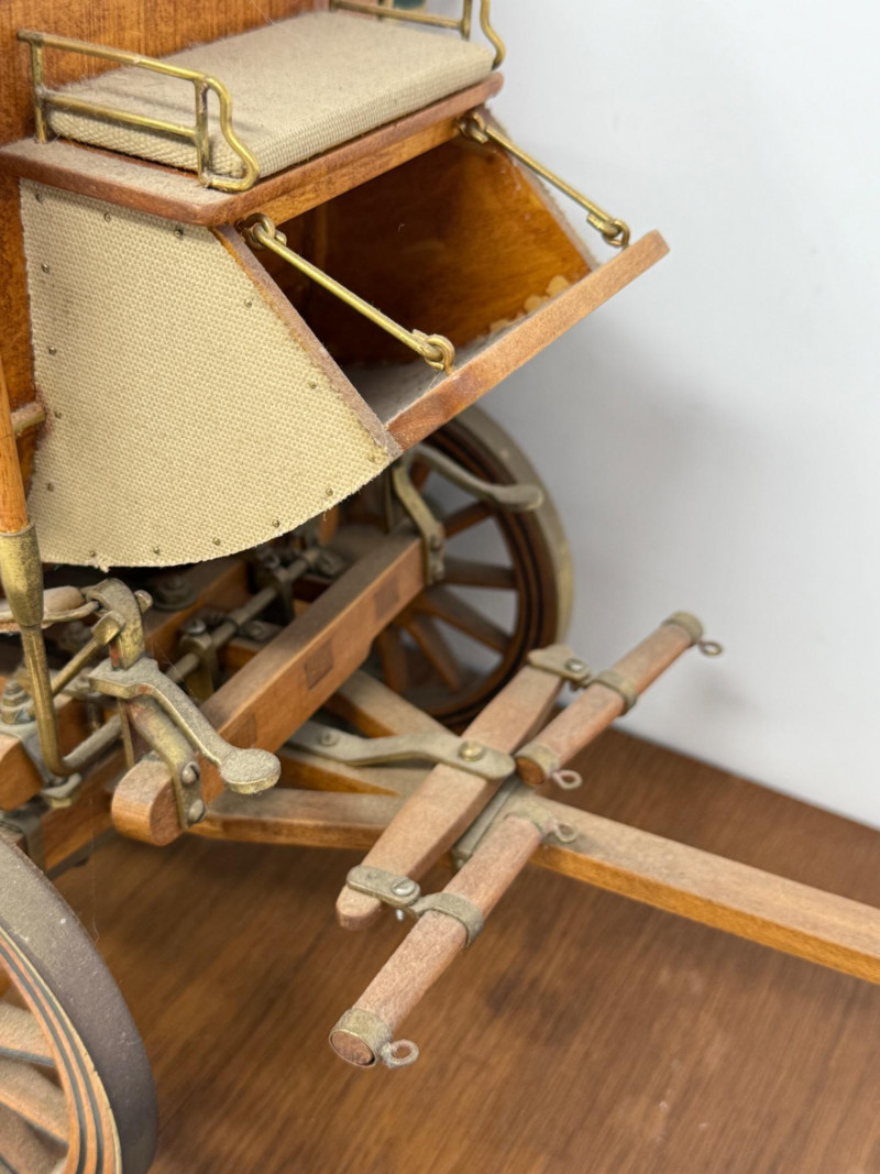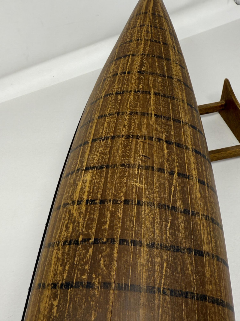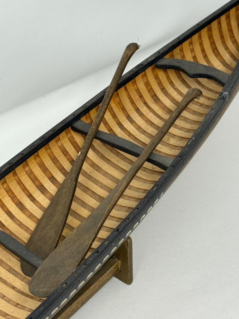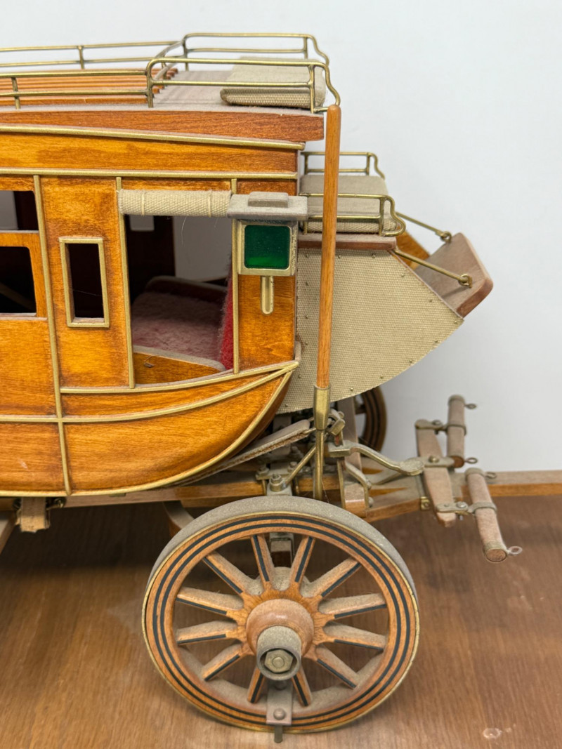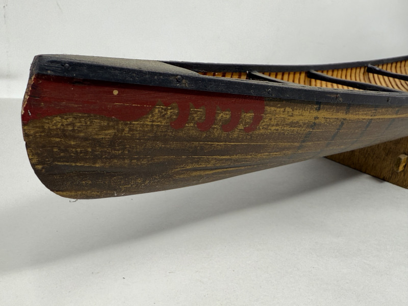 Handcrafted Stagecoach and Canoe Canoe is 27.5x4.5” on stand Stagecoach is attached to a 21”x9.5” board. All hinges and mechanisms work. Extreme detail.