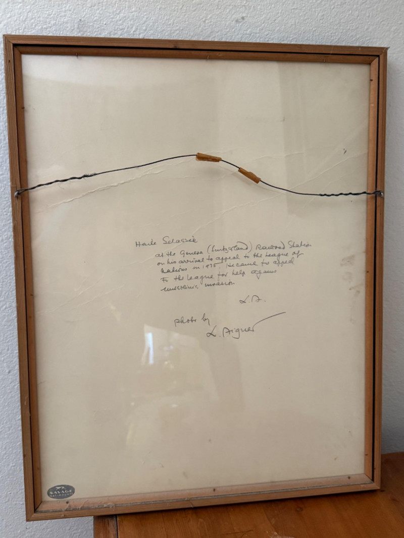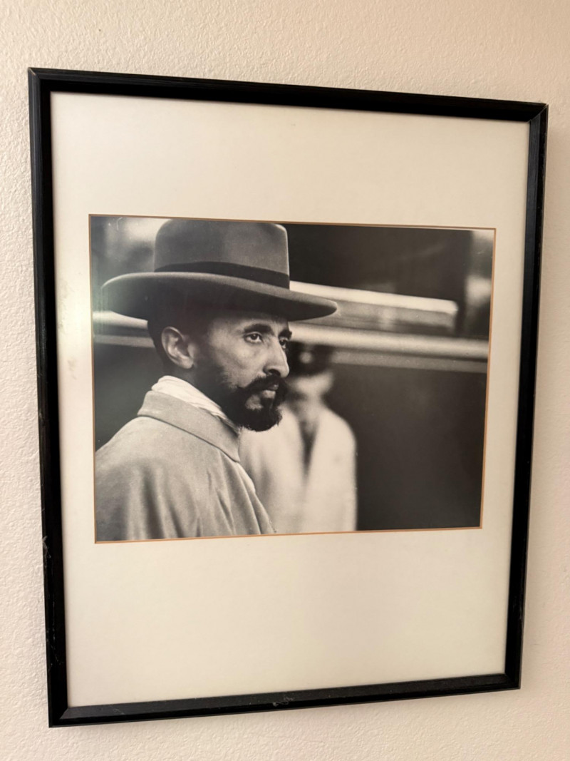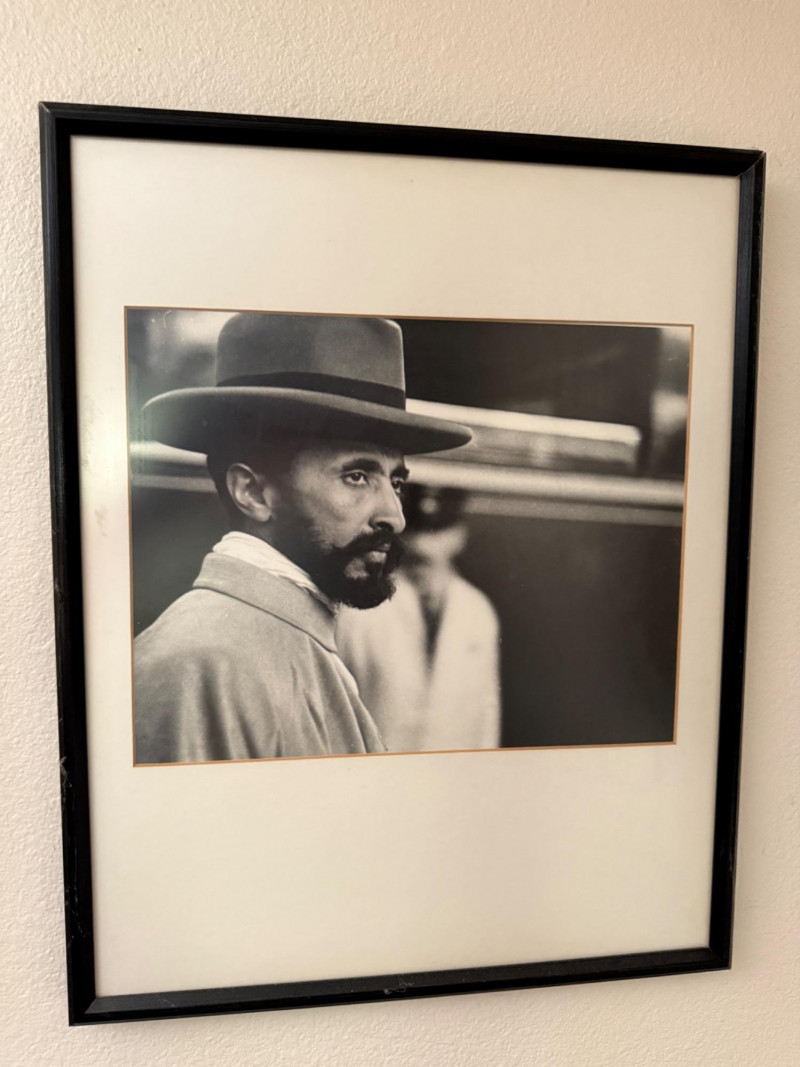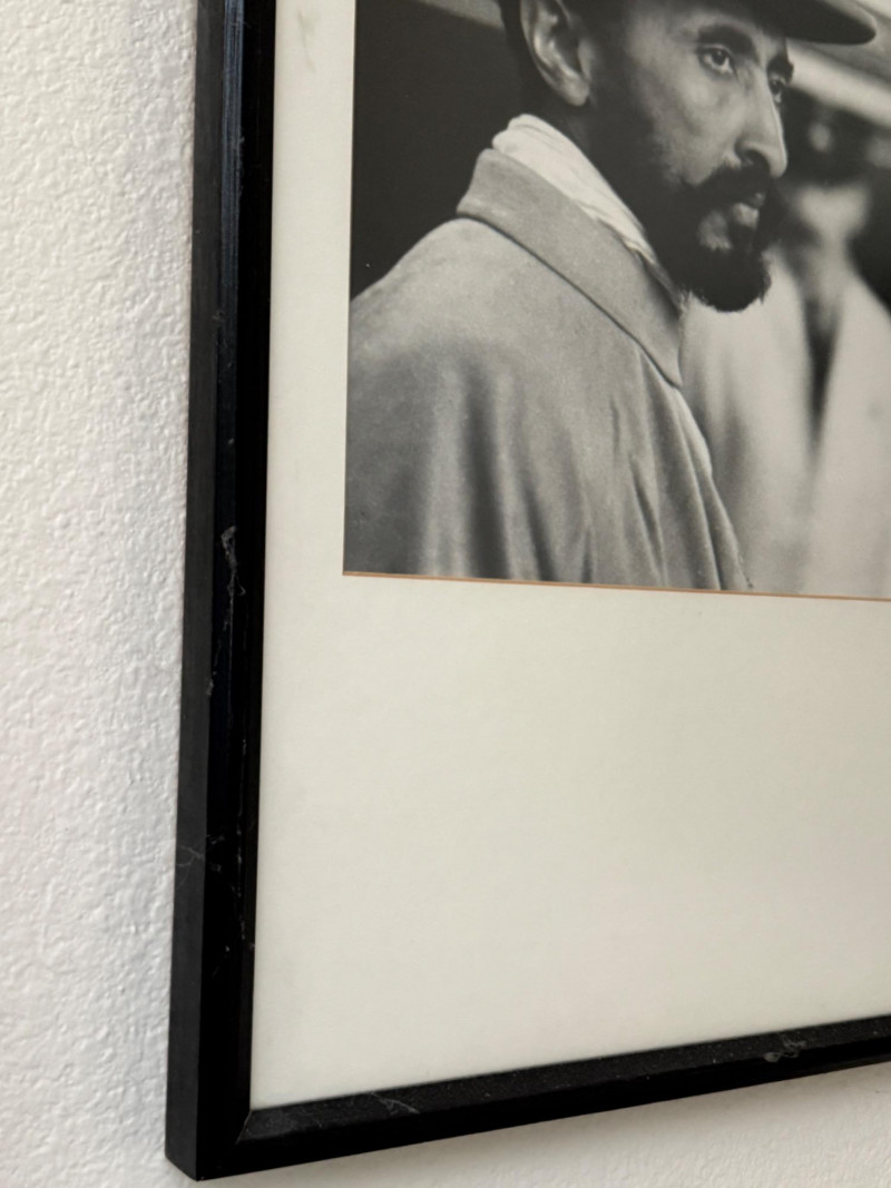 Framed Photograph of Haile Selassie -Ethiopian Emperor 16.5x20.5” black wood frame matted under glass.