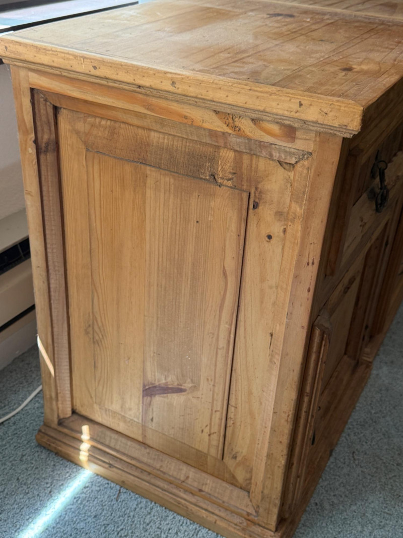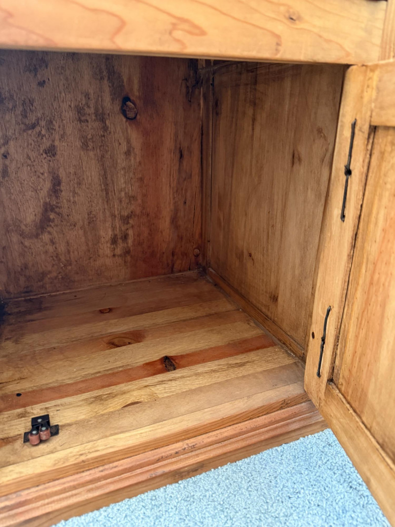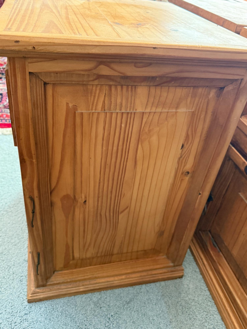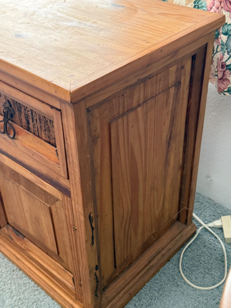 (3) Mexican Pine Bedside Tables One has unaddressed splashes and possible staining. See pics. 18x16x24”