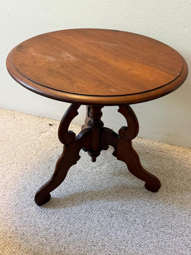 Antique Eastlake Style Drop Top Parlor Table. Normal surface wear on table top. 24x22”