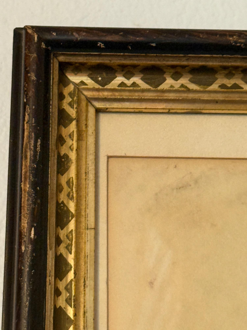 Charcoal Art Late 19th century woman carrying her baby Signed Campbell