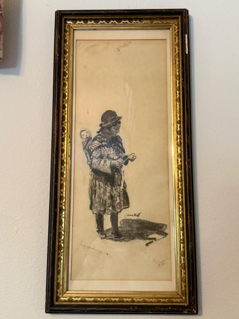 Lot # 69 - Woman Carrying Baby - Early 1900’s Charcoal Art by Campbell