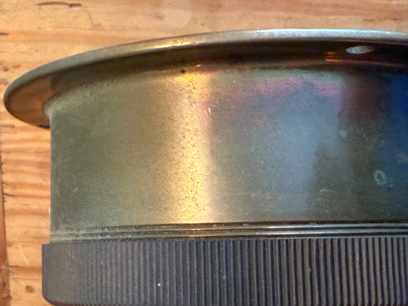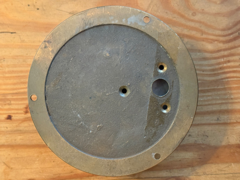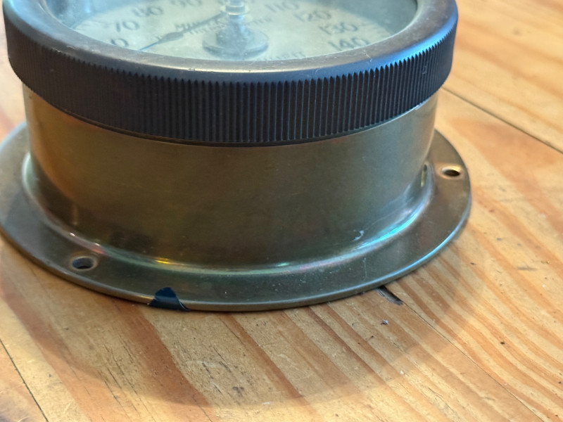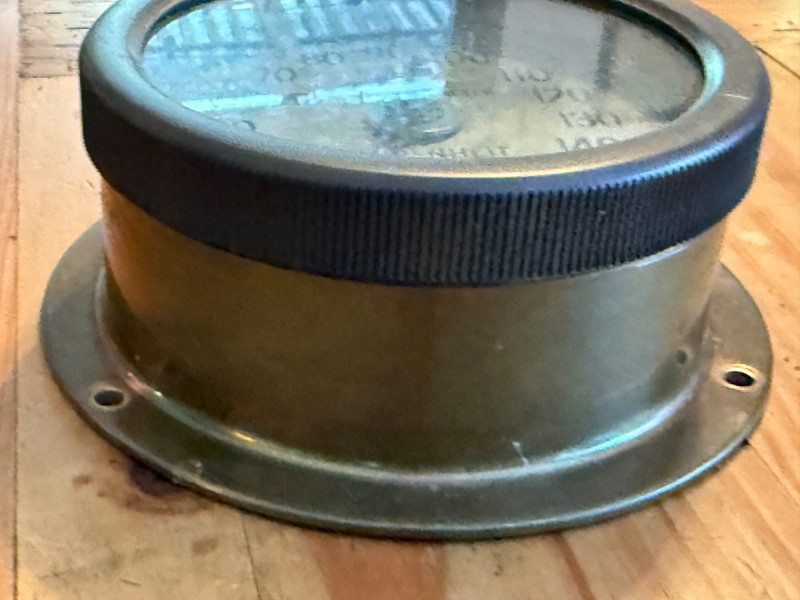 Brass dial thermometer, specifically a bimetal thermometer, which uses a bimetallic spiral to measure temperature. These types of thermometers were commonly used in industrial settings, such as boilers, steam engines, and ship boilers, to measure high temperatures Brass Moeller Dial Thermometer Richmond Hill, NYC Face is removable, functions not tested. 6x2.5”