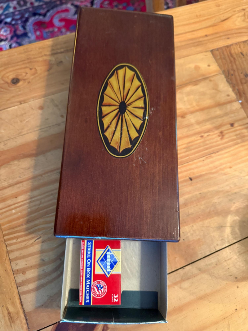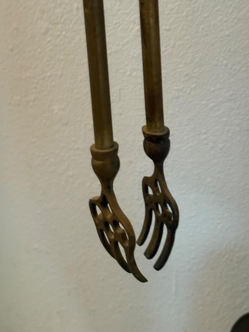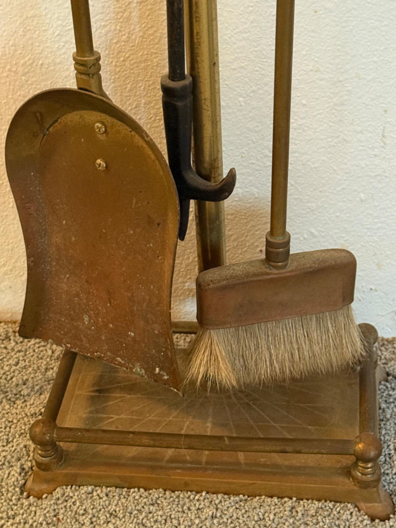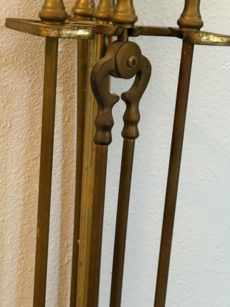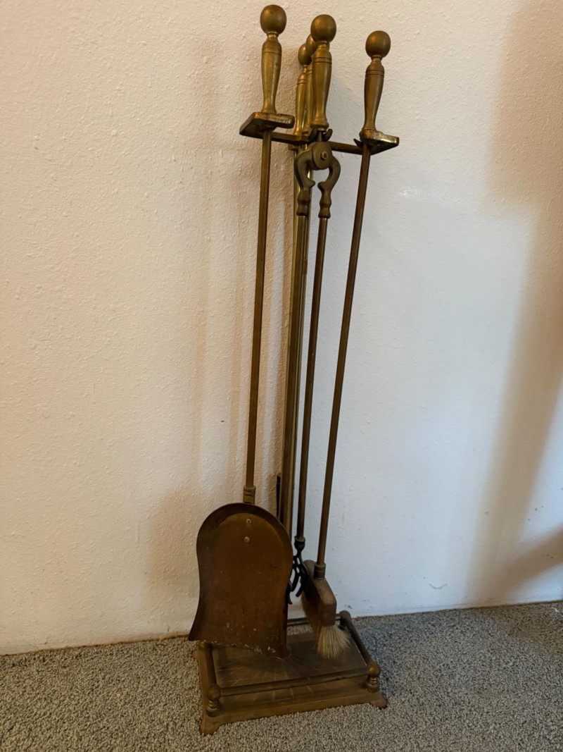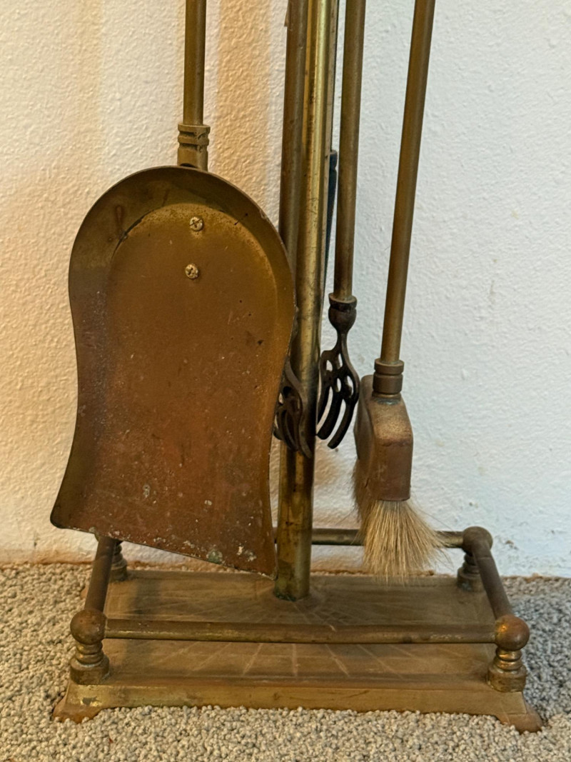 5 Piece Brass Fireplace Utensil Set and rosewood match holder