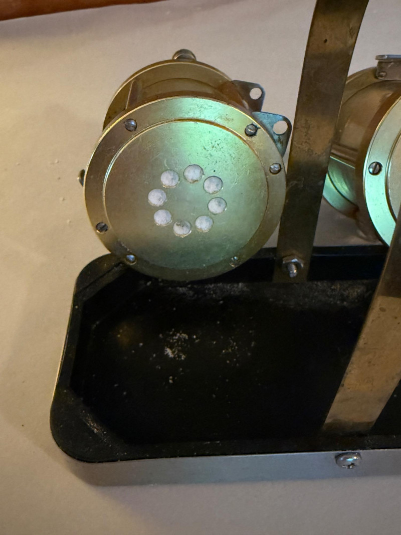 Spinning Reel Salt and Pepper Grinder Set Holder is 6x3” reels are 3x4” including the grinding handle. Work great! Heavy duty.