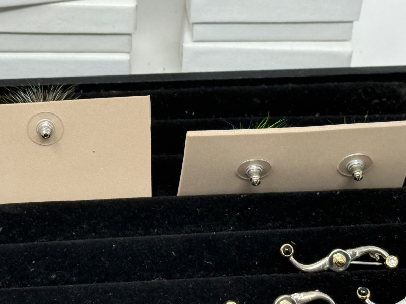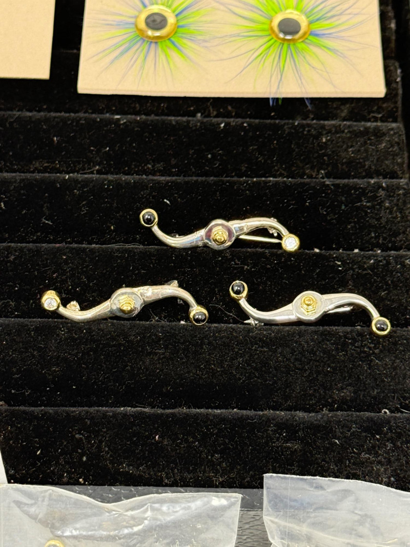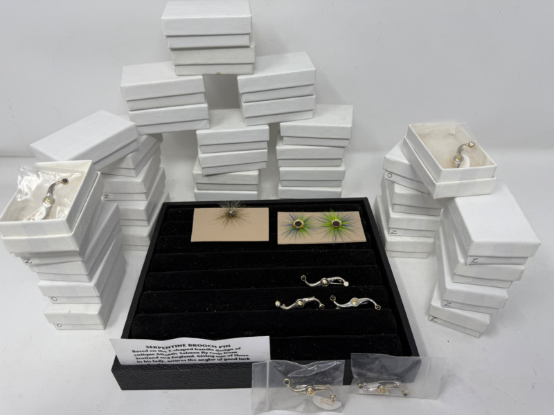 (40) 925 Silver Serpentine Brooch Pins each measures 1.5” - Each piece weighs 3.1g The boxes are marked Z and O which determines if the pin has matching stones or not. Ready For Resale