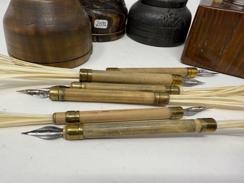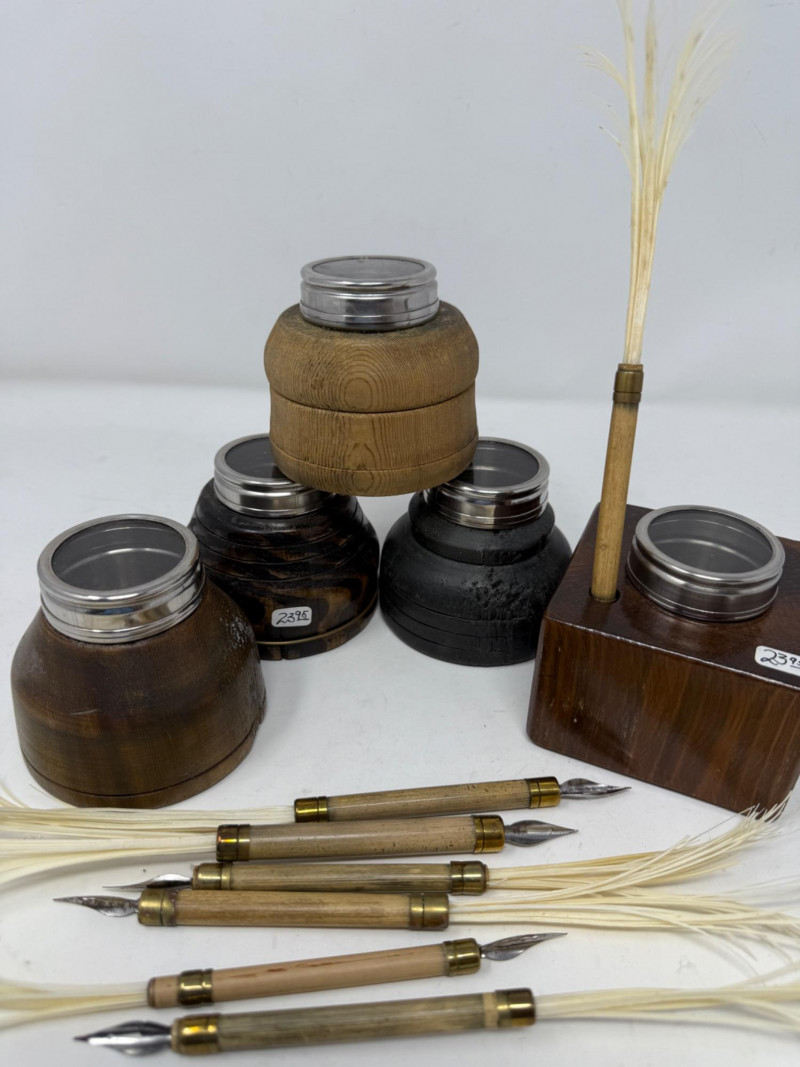 Lot # 91 - (7) Handcrafted Calligraphy Pens & (5) Wood Inkwells