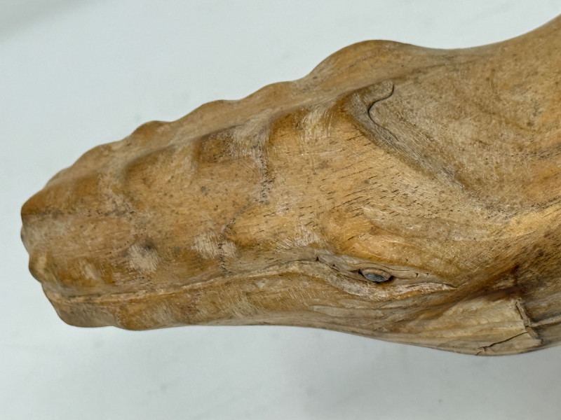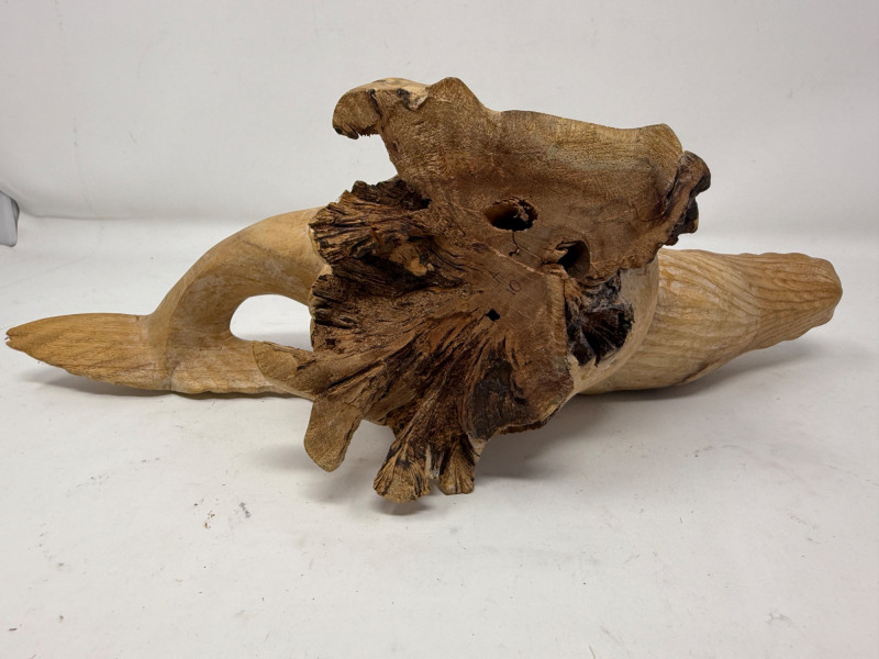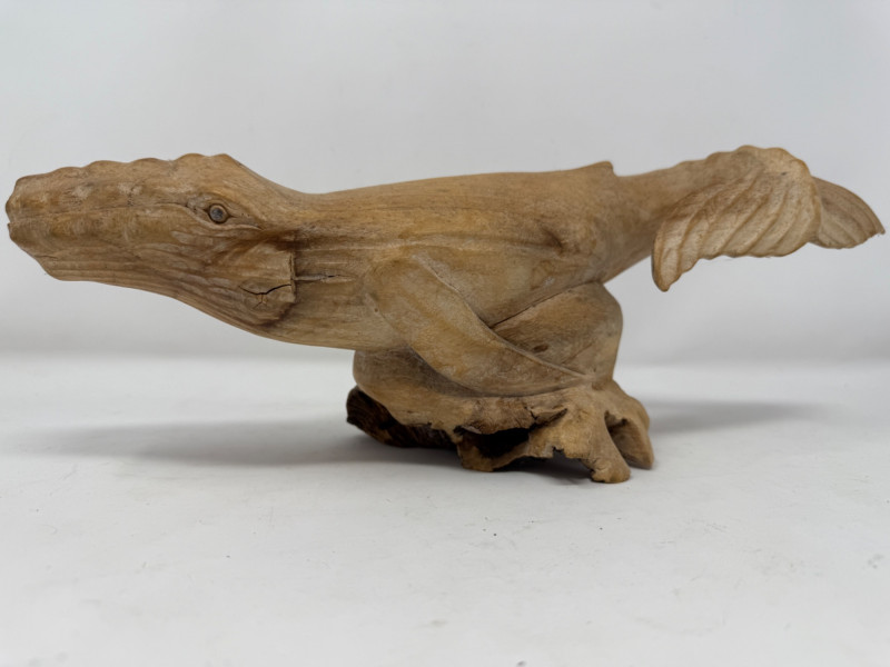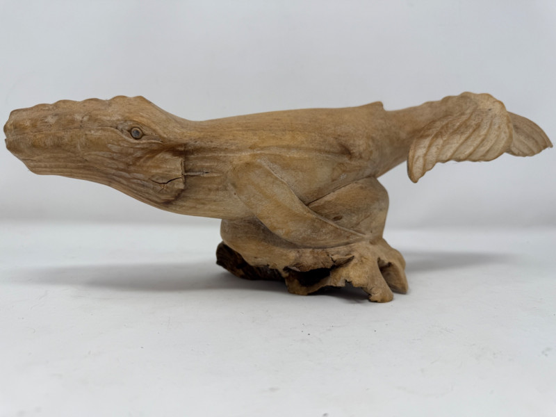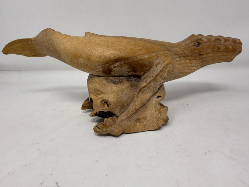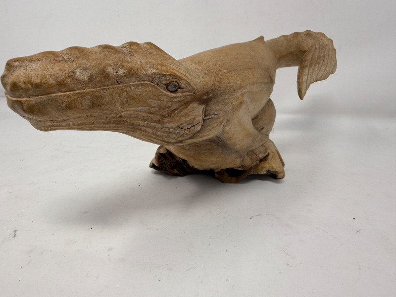Hand Carved Burl Wood Humpback Whale Large carving is 14.5x5x5.5”