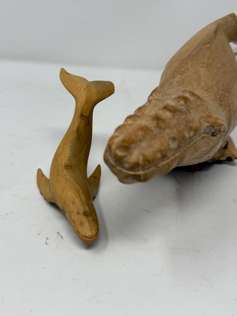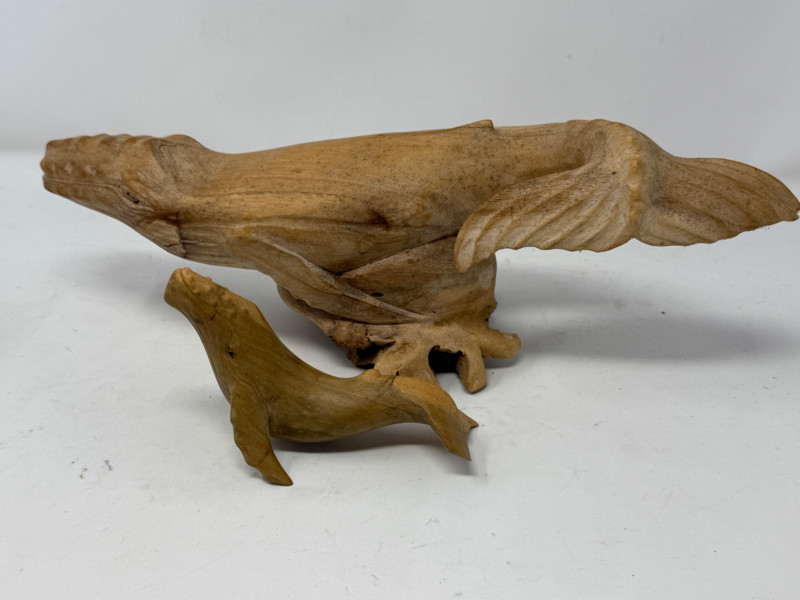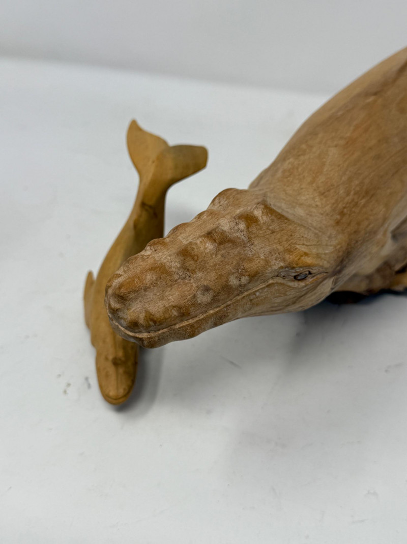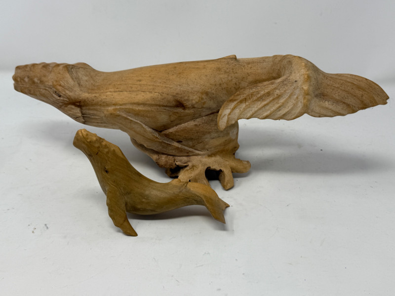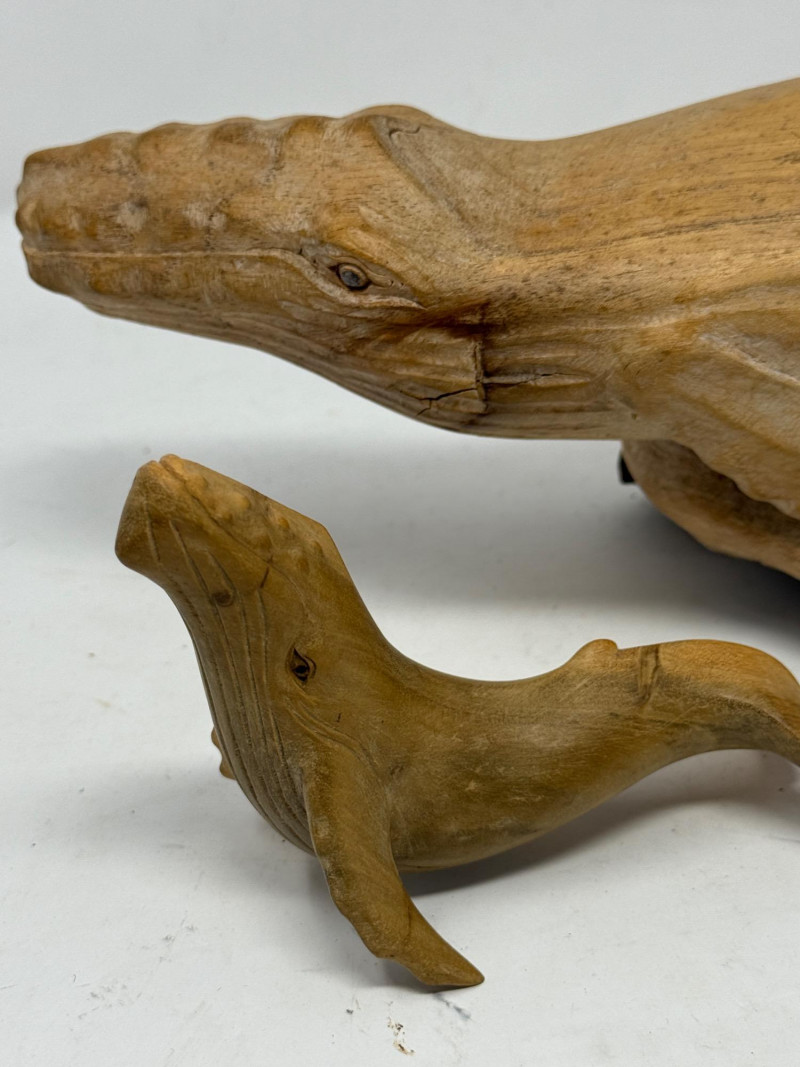Lot # 95 - (2) Hand Carved Wood Humpback Whale Statues