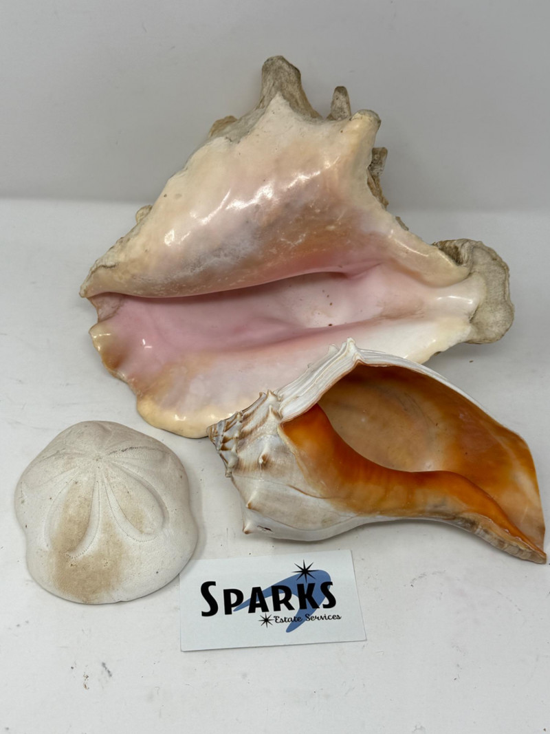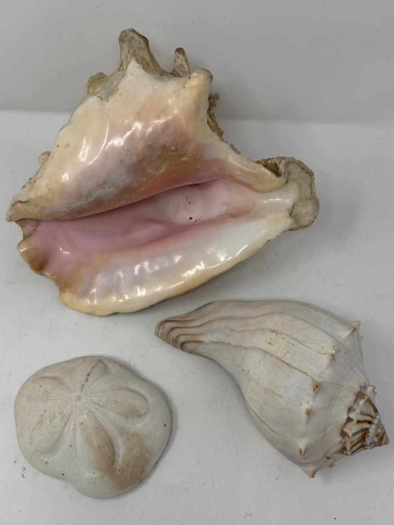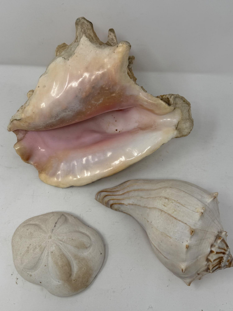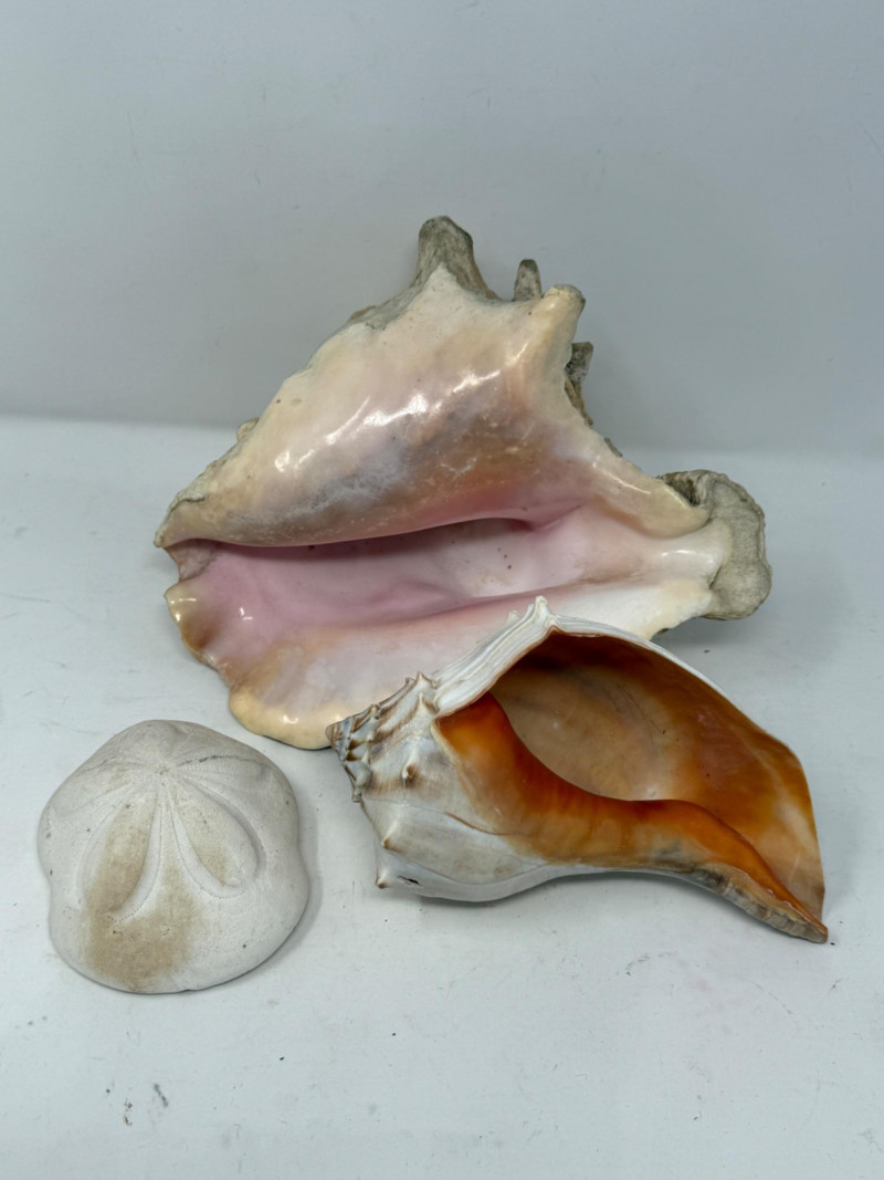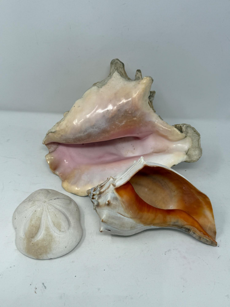Conch - Whelk - Sea Biscuit - Saltwater Beach Shells 7.5” whelk shell 4.5” sand dollar sea biscuit