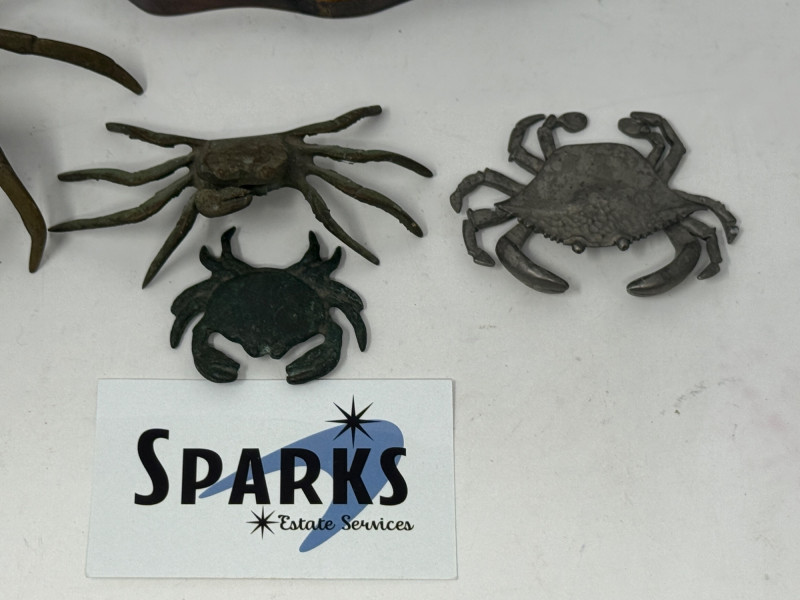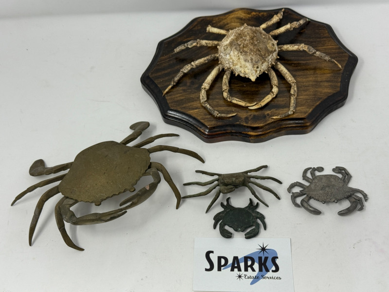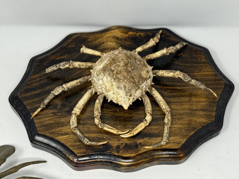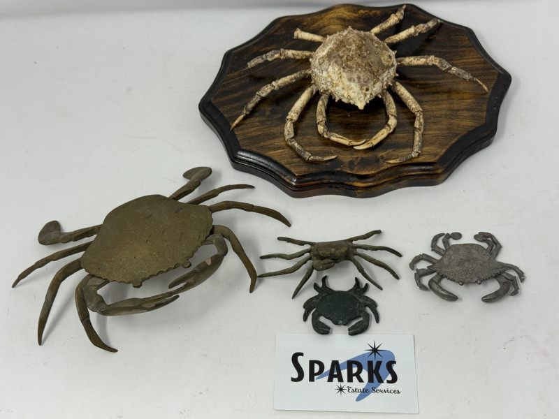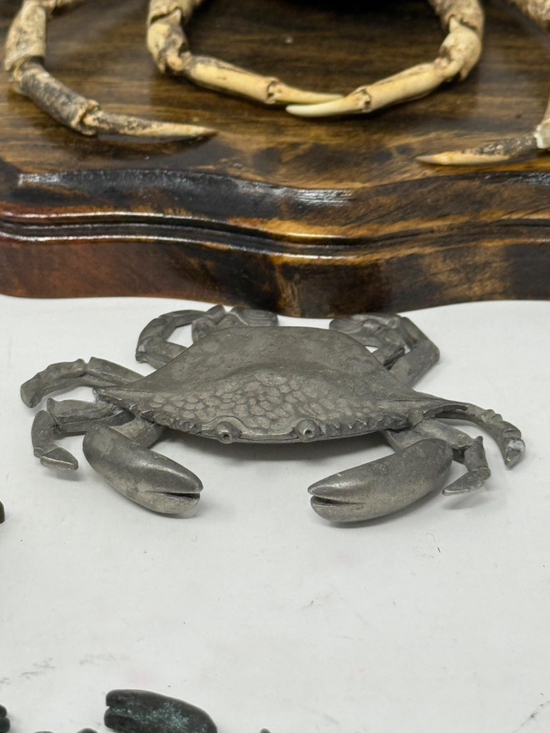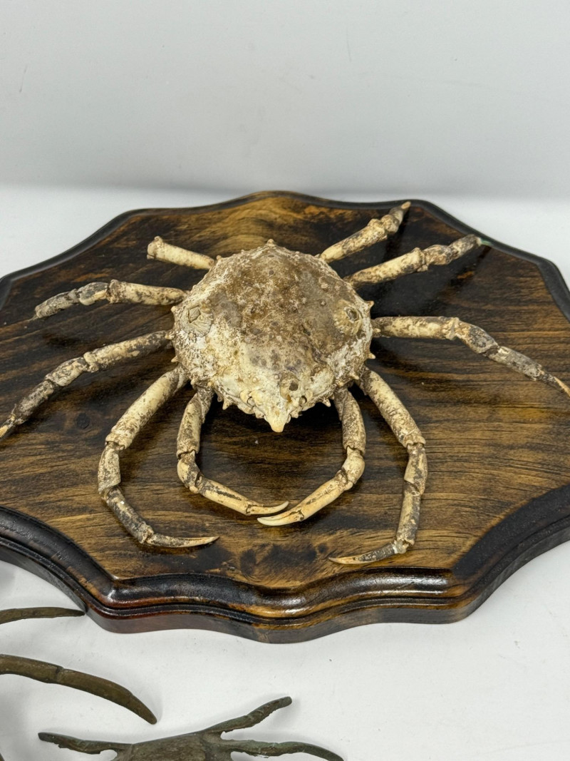 Lot # 102 - Metal Dungeness Crabs and Wood Mounted Spider Crab