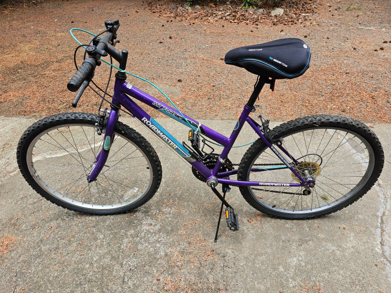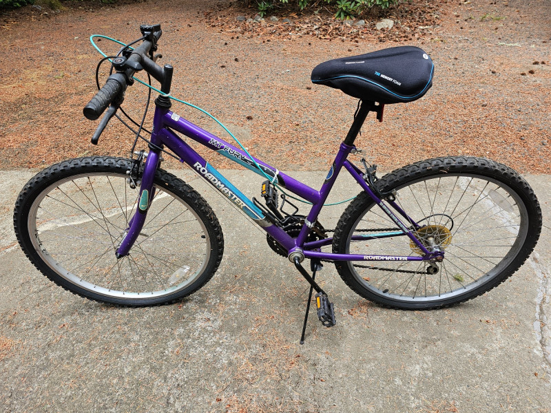 Roadmaster Mt Fury 15-Speed Mountain Bike 15-speed index or thumb shift Some rust on top of handlebars, both tires are flat Includes Bell 700 Memory Foam seat cover