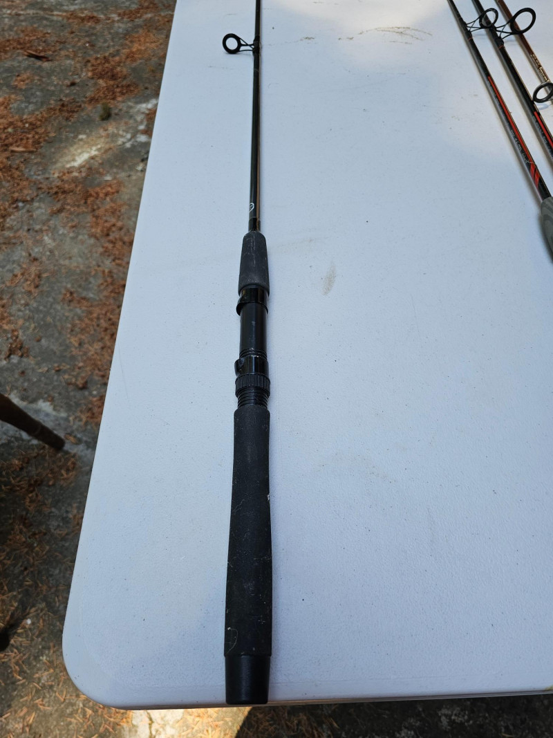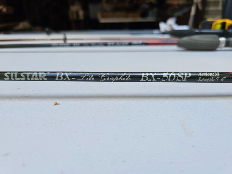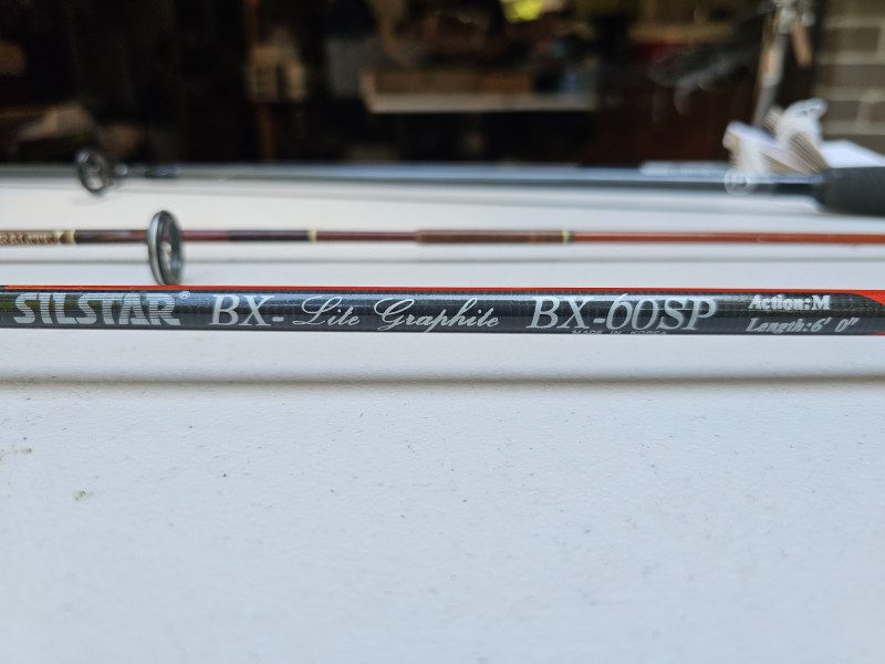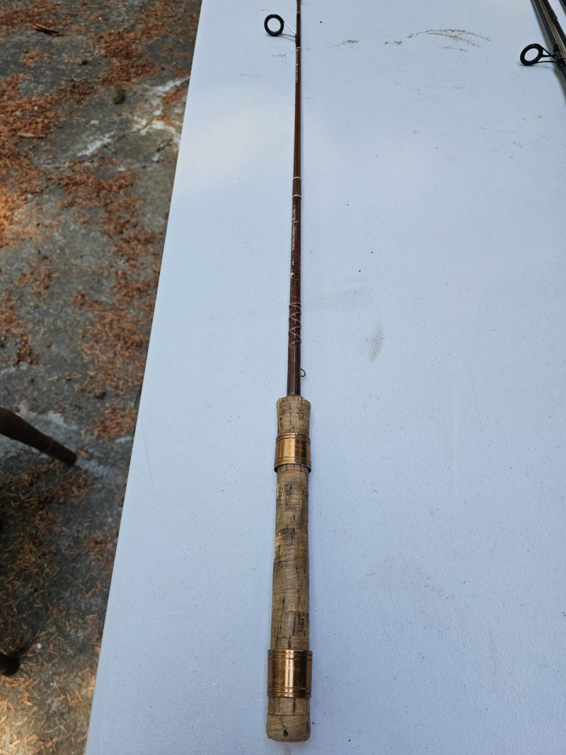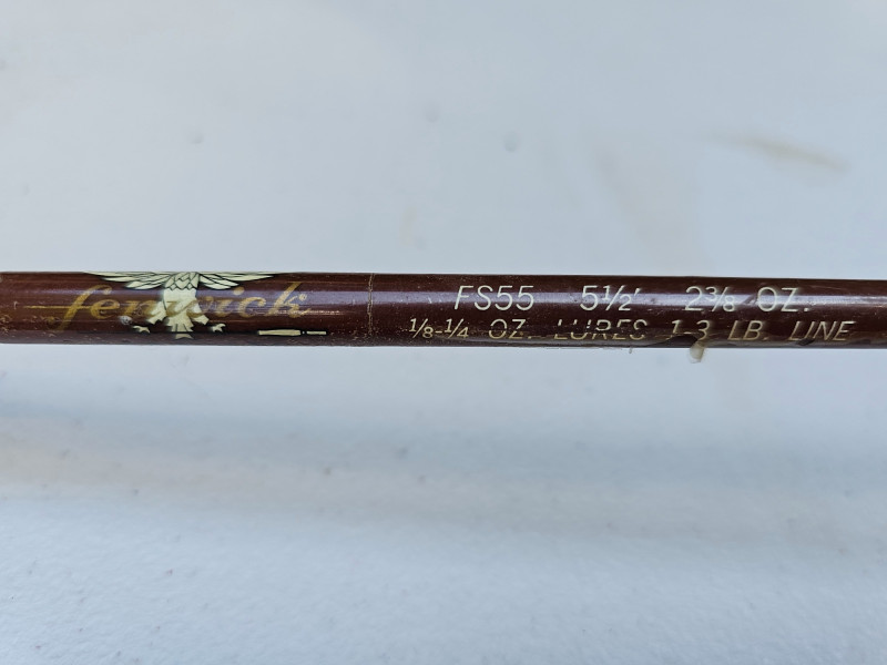 Vintage Fenwick Feralite FS55 Spinning Rod + 3 Additional Rods (1) Fenwick Feralite FS55 Fiberglass 5-Eye Spinning Rod 5.5ft long and weighs 2 3/8oz Cork handle Founded in 1952 in Washington State, Fenwick was one of the first companies to mass-produce fiberglass fishing rods, revolutionizing the industry. The FS series, including the FS55, was popular for its lightweight design and versatility, suitable for various fishing techniques Plus: (1) Shimano SAX-2602 Aeroglass 5-Eye Spinning Rod - 6ft long (1) Silstar BX-60SP Lite Graphite 6-Eye Spinning Rod - 6ft long (1) Silstar BX-60SP Lite Graphite 6-Eye Spinning Rod - 5.5ft long 4 Spinning rods in total!