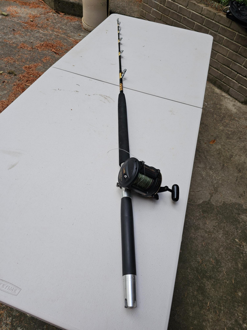 Shimano TLD25 Saltwater Fishing Reel & 68" Bigwater Conventional Rod Combo Shimano TLD25 lever drag fishing reel, a popular conventional reel known for its versatility and durability in saltwater fishing, particularly for offshore species. Ball bearing titanium lever drag, Bigwater Conventional 68" Rod With 6 Aftco Heavy Duty Stripper Roller Guides For Saltwater Fishing Get ready to catch the big tuna with this rig!