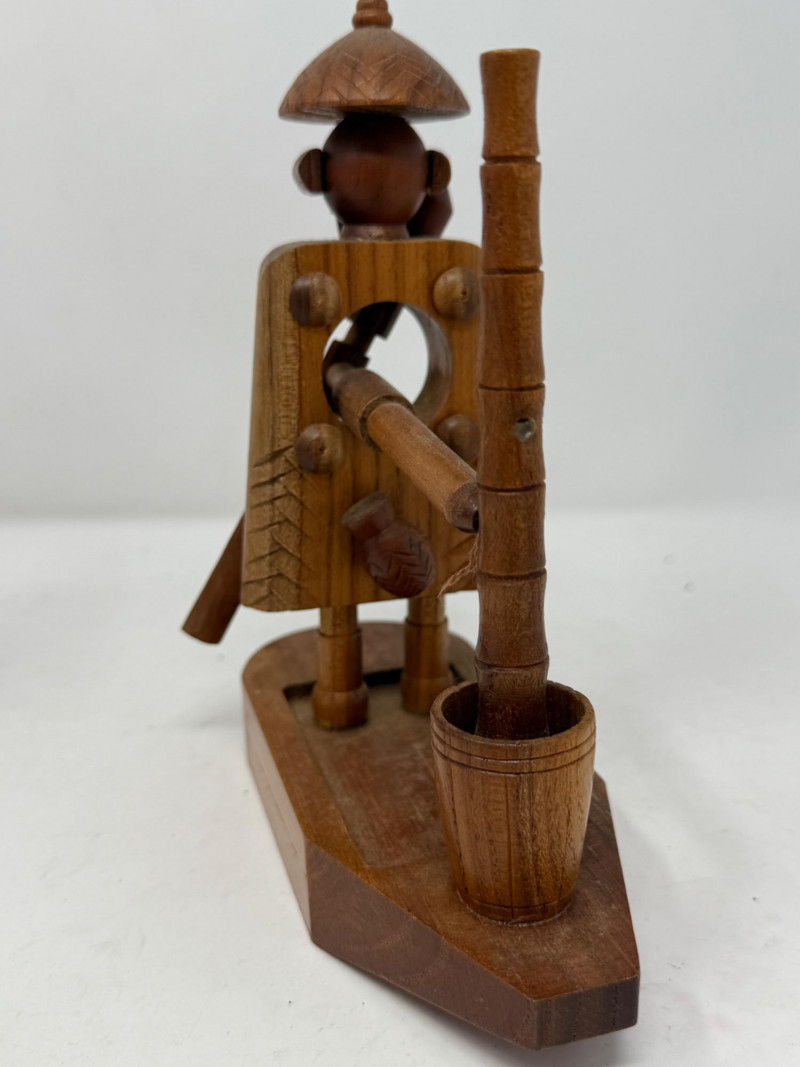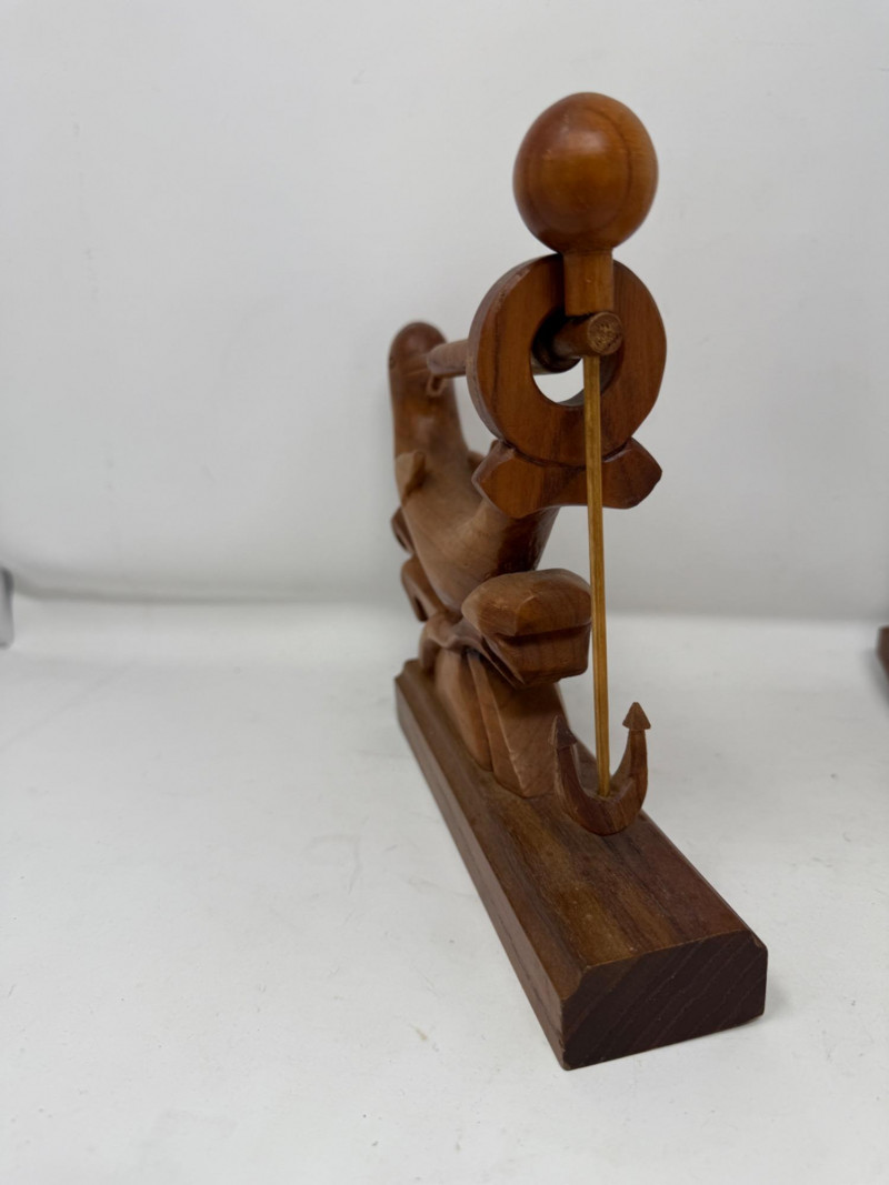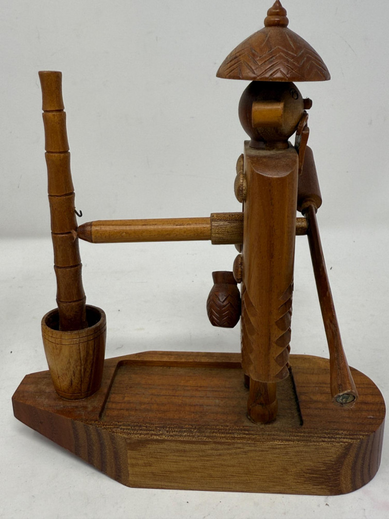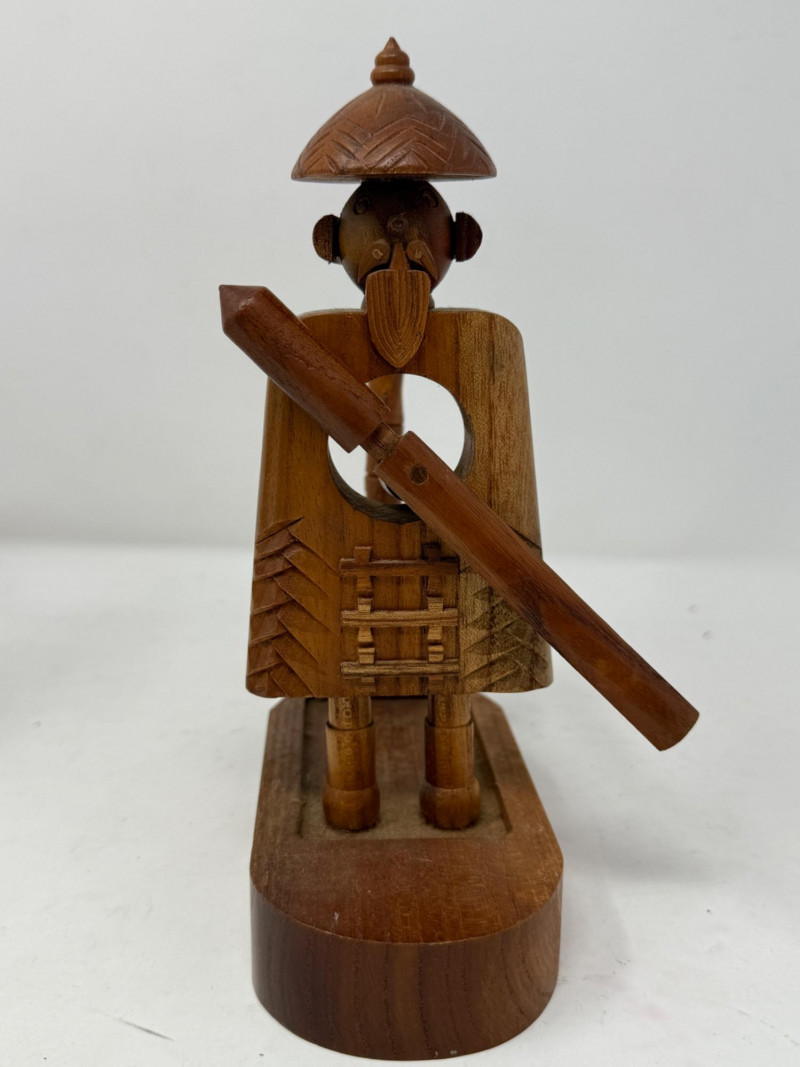 (2) Folk Art Perpetual Motion Carvings Soldier with Sword is missing the battery cover 7x8” Battery operated, not tested. See pics.