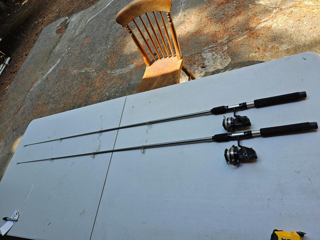 (2) Swift-660/F Spinner Reels With Telescoping 65" Rods (4-Eye) Rod collapses to 16" for easy storage, and extends to 65" when ready to use Perfect to keep in your truck, cabin, or hideaway for those impromptu fishing excursions!