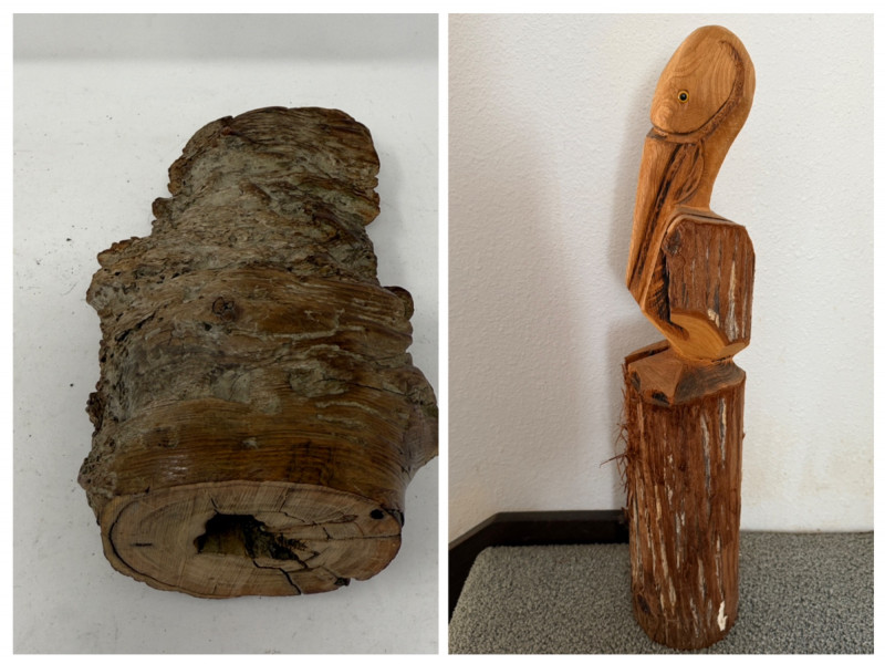 Lot # 140 - Hand Carved Pelican Statue & Burl Wood Knot