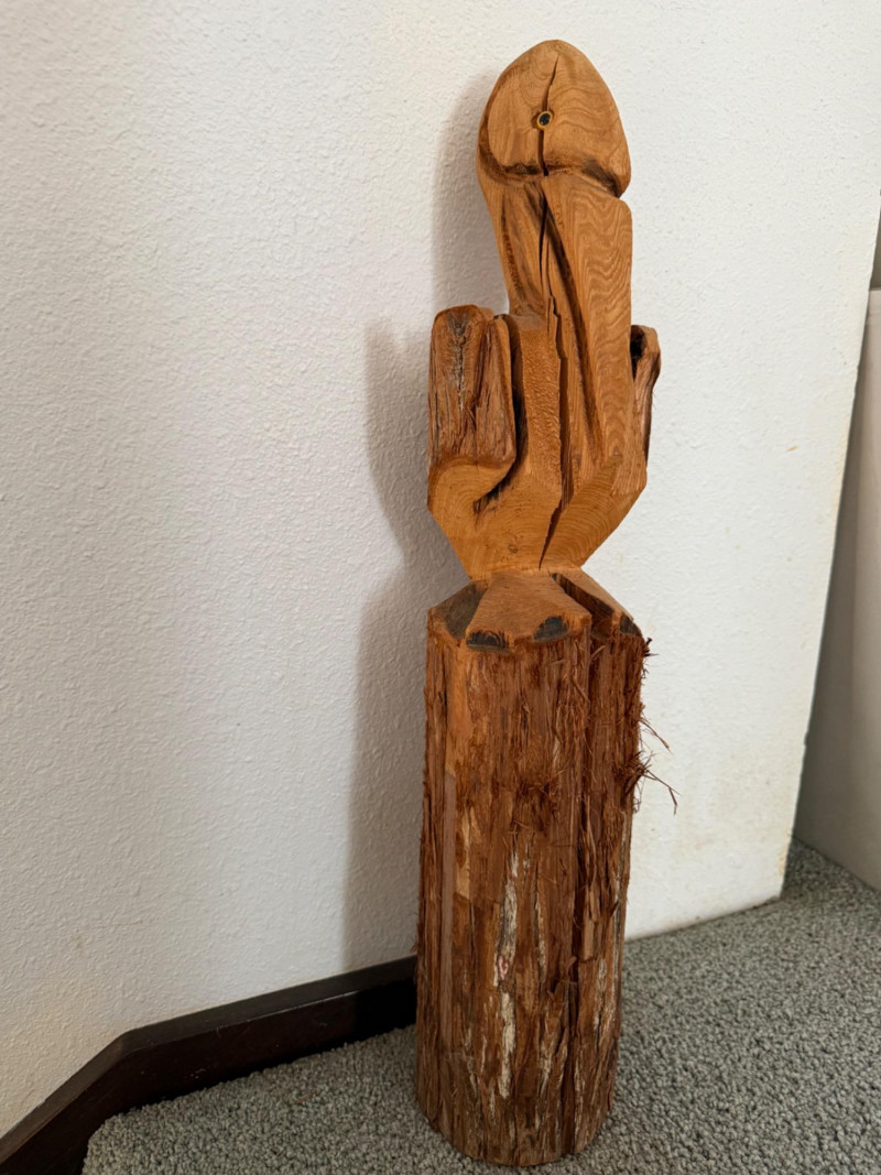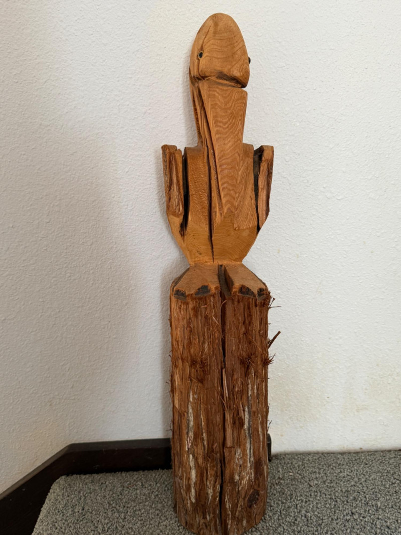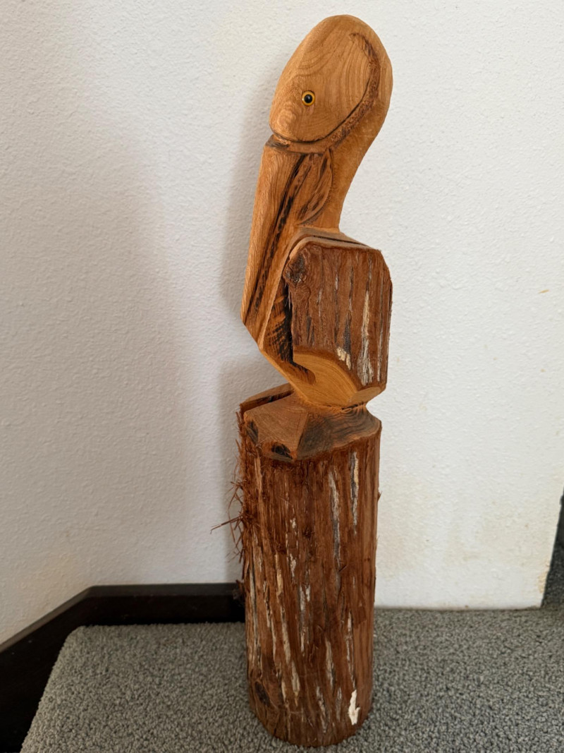 Hand Carved Pelican Statue & Burl Wood Knot Carved Pelican is 5x24”