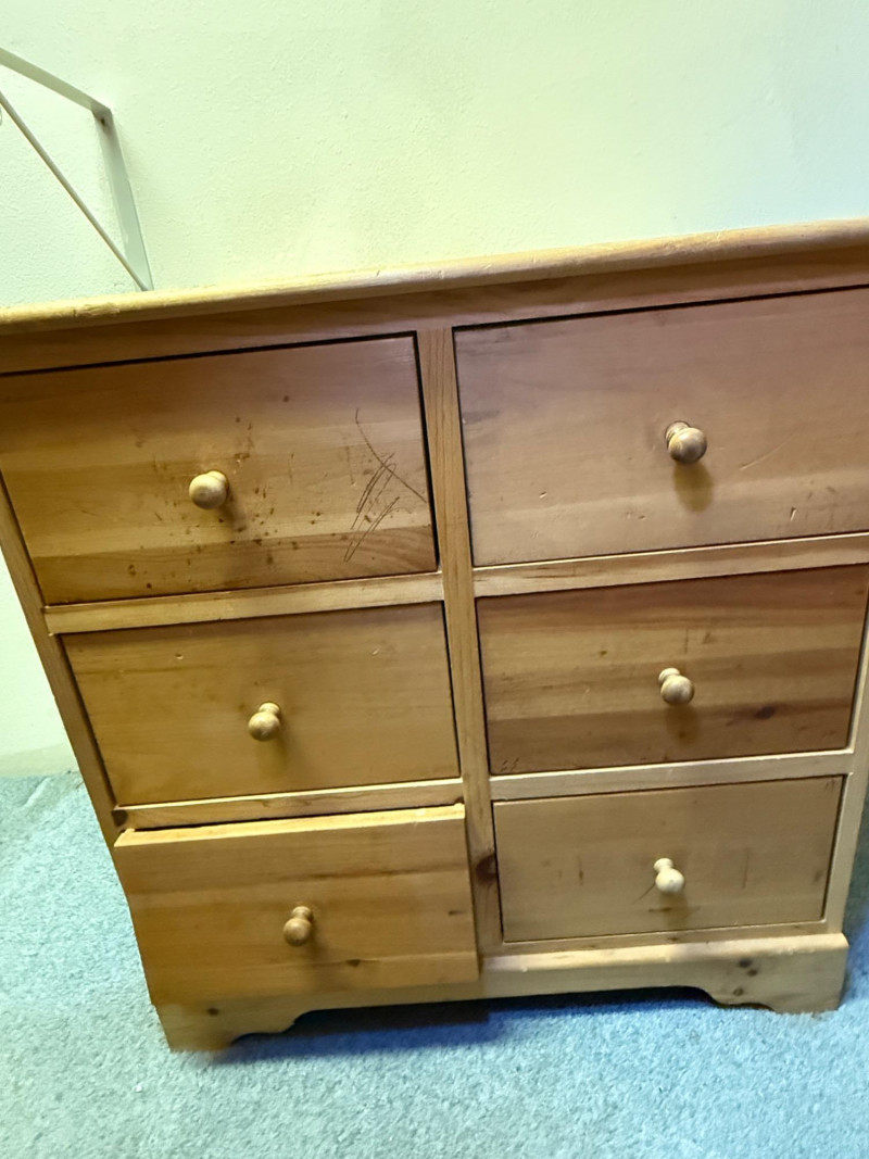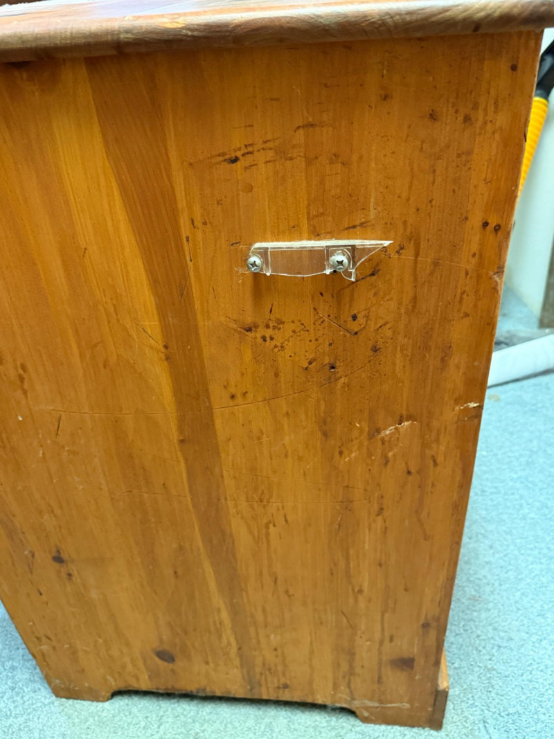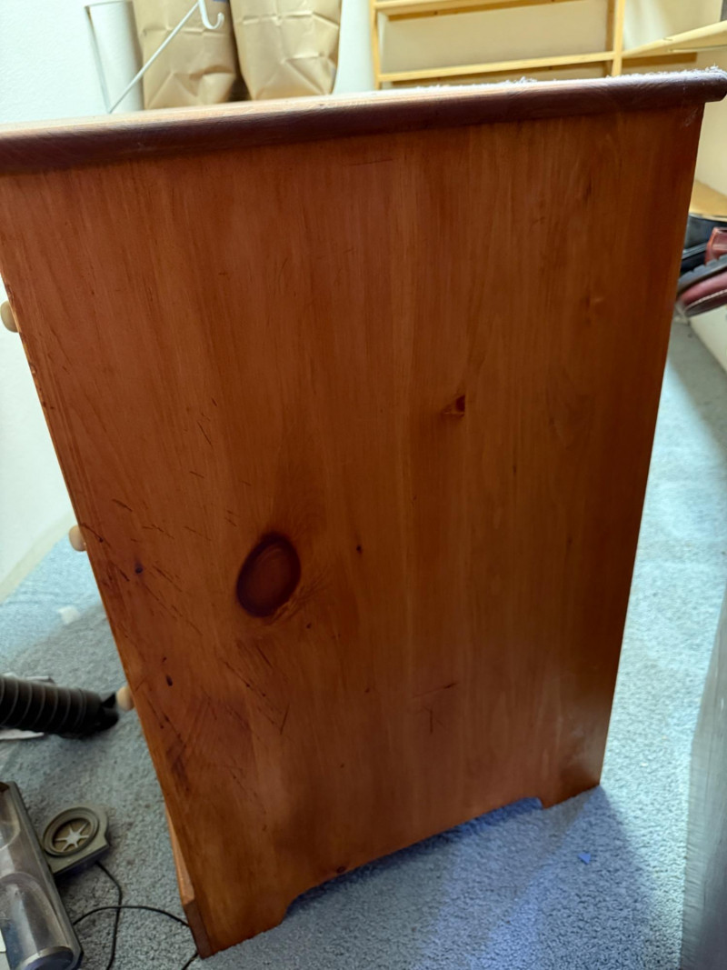 21x31x22” Pine dressers. Perfect candidates for refinishing. One bottom drawer is missing support. Good compact size.