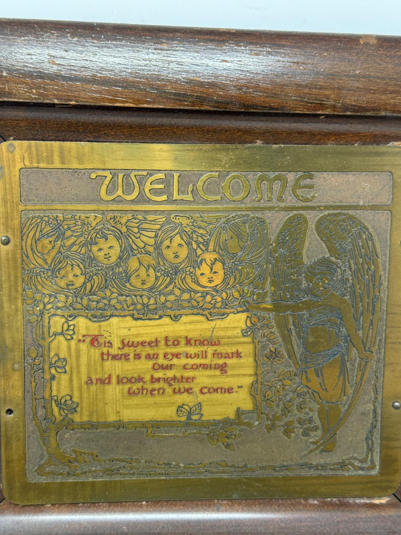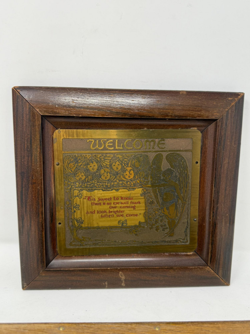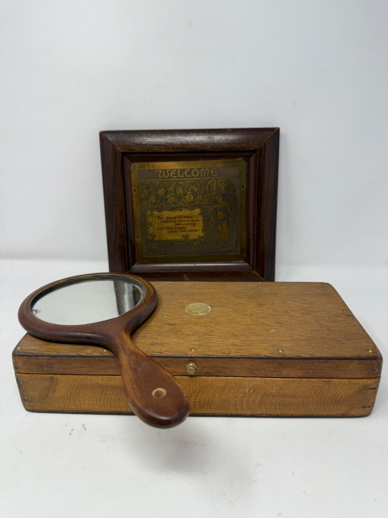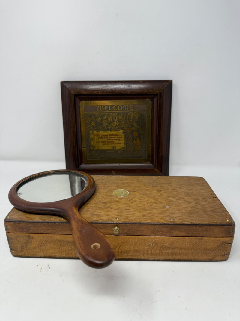 Lot # 158 - Wood Box - Hand Mirror and Wood Framed Metal Welcome Sign