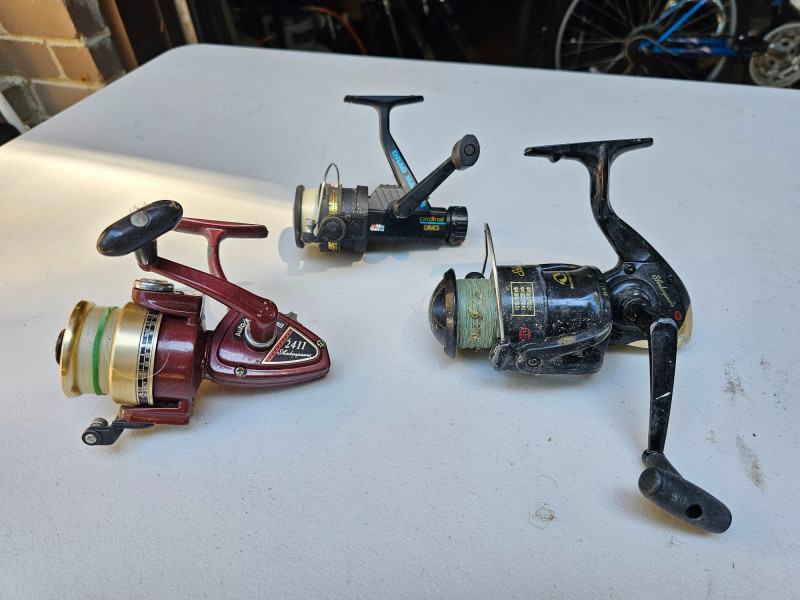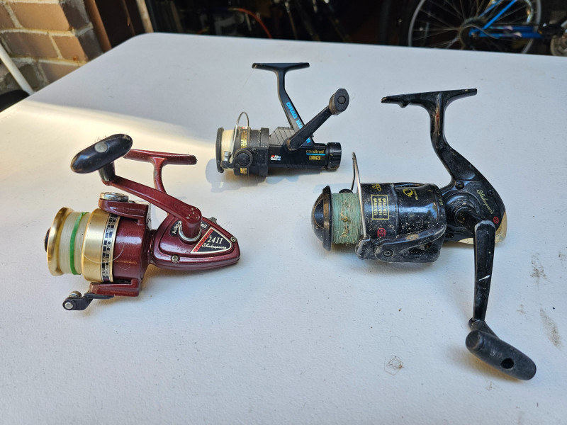 (2) Shakespeare & (1) Abu Garcia Cardinal Spinning Reels Shakespeare 2411 Spinning Reel Vintage Shakespeare 2411 spinning reels are now sought after by collectors and anglers who appreciate their classic design and durable construction Shakespeare USP1502 Spinning Reel Shakespeare USP1502 spinning reels are designed for ease of use and durability, making them a staple in the tackle boxes of many anglers Abu Garcia Cardinal DM3 Spinning Reel The DM3 model, part of the Drag Master series, offered enhanced drag control for battling larger fish 3 spinning reels in total!