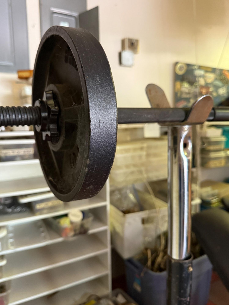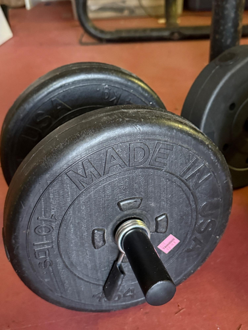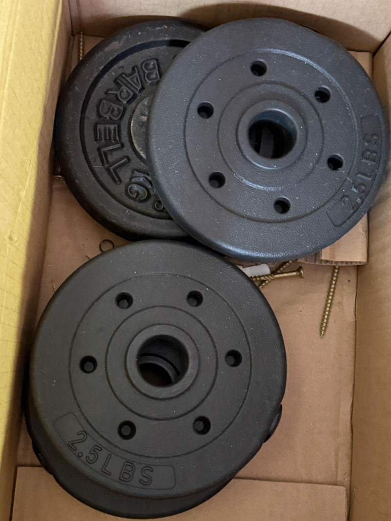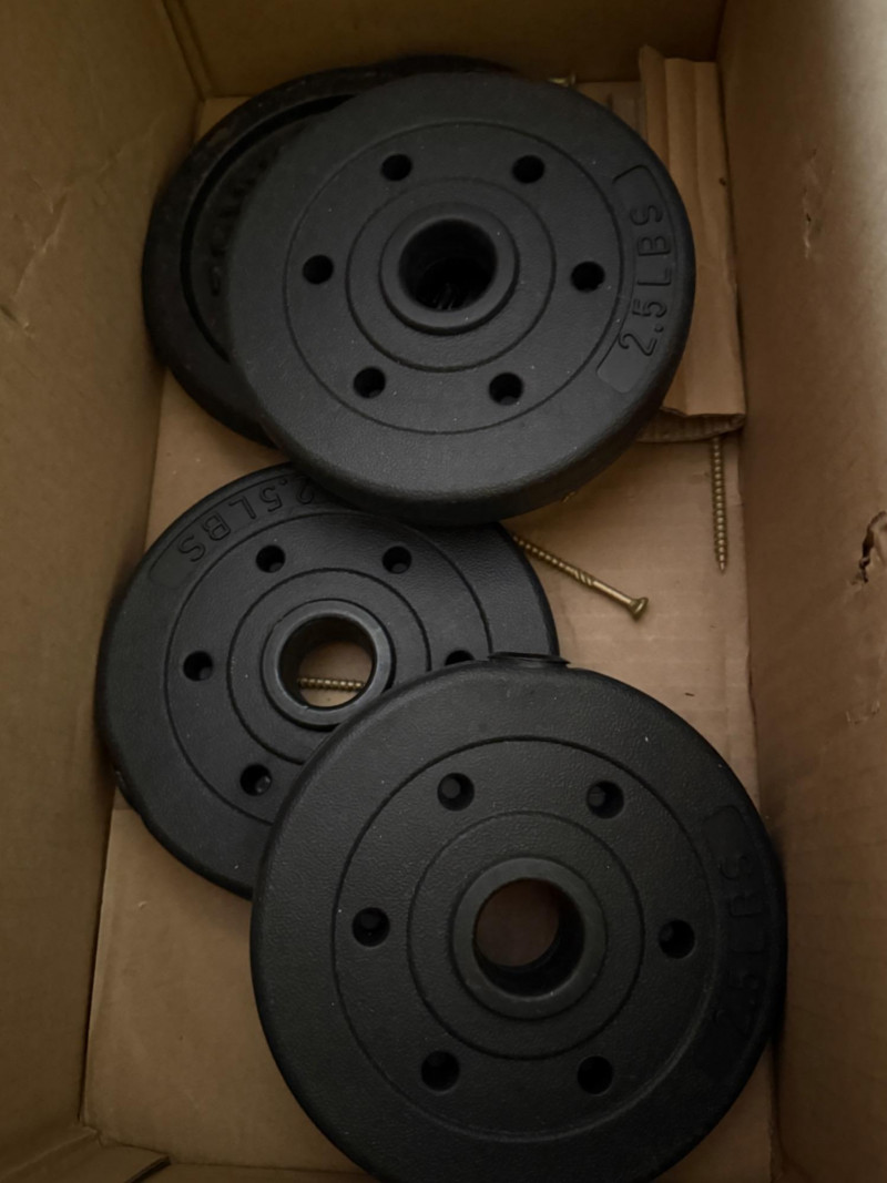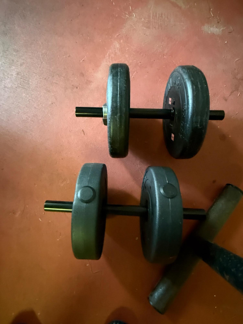 5 & 3lb weights on short double bar