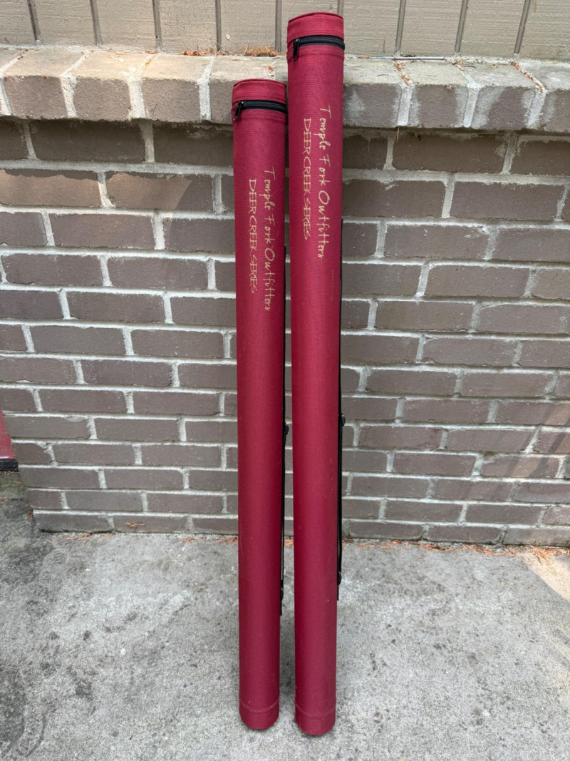 (2) Temple Fork Outfitters Rod Cases and 1 rod wrap.