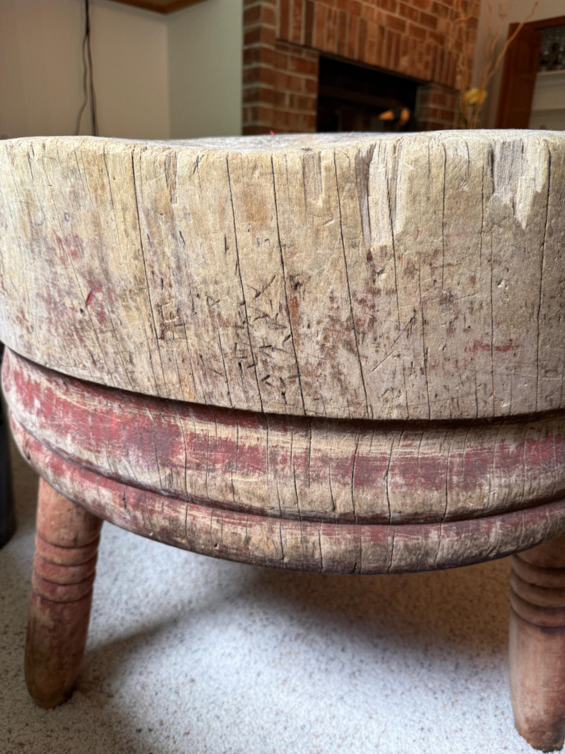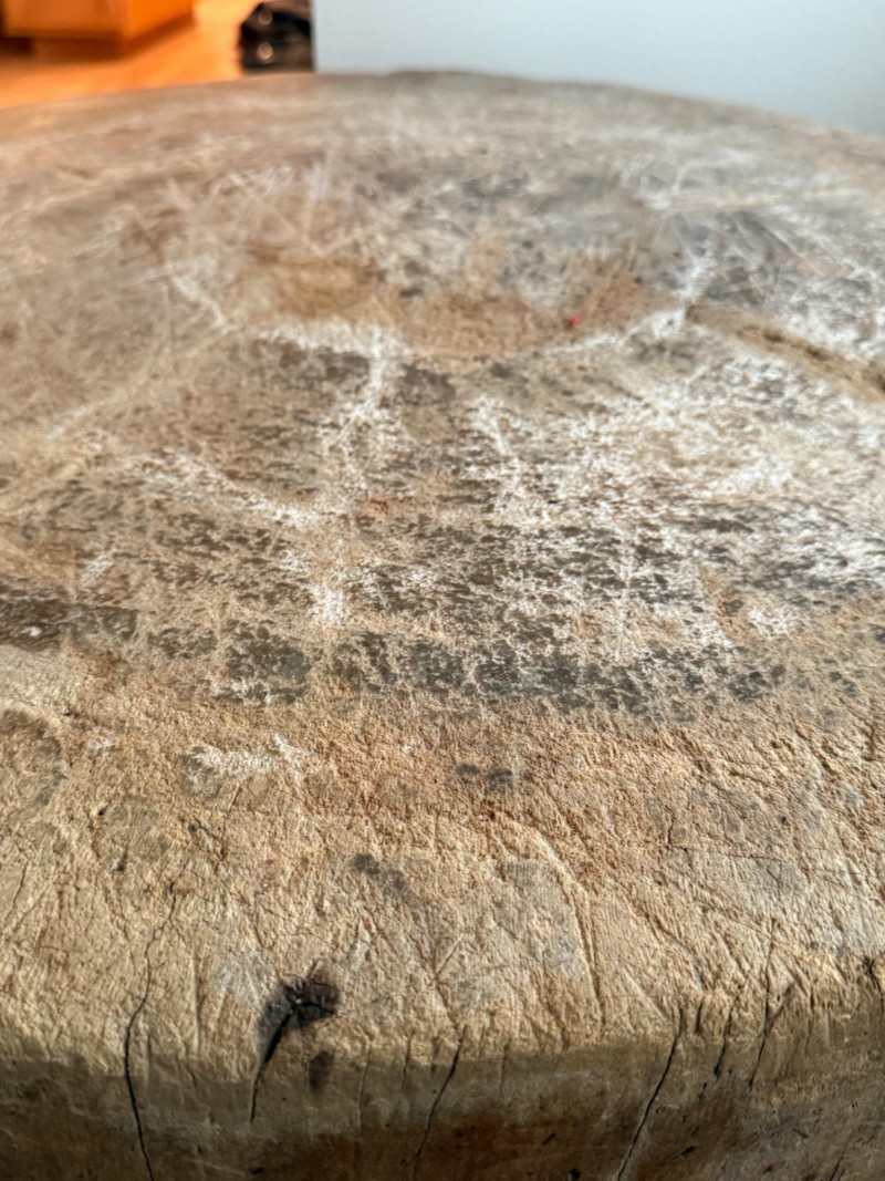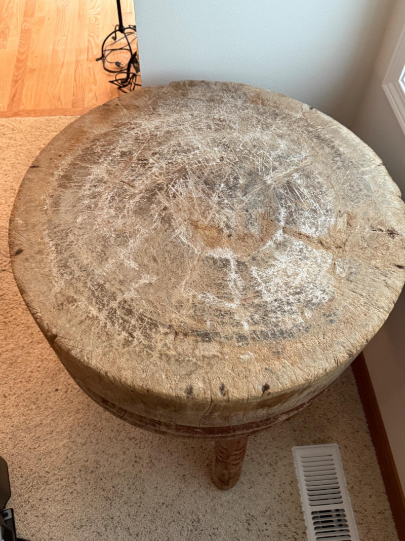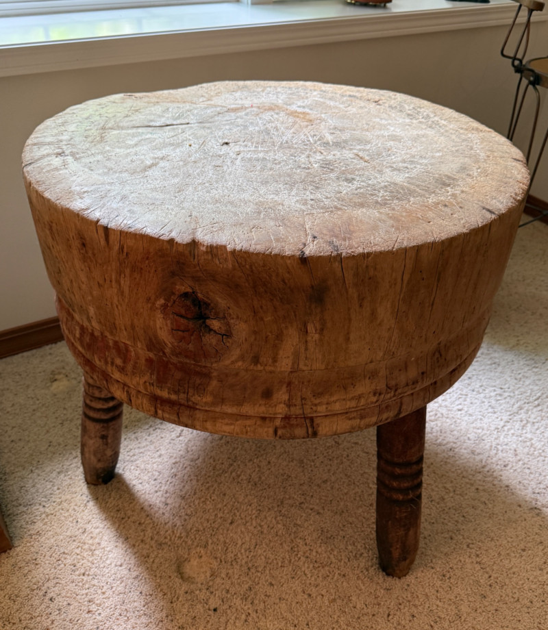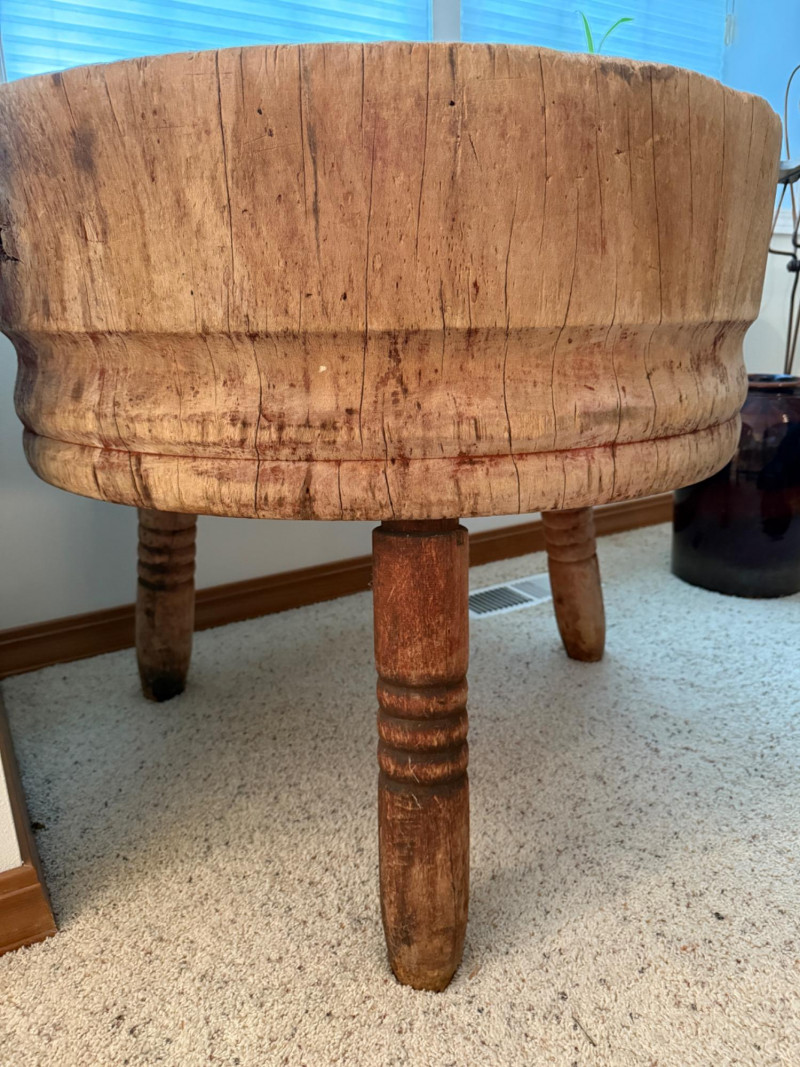 Antique 32” Round Freestanding Butcher Block The block itself is 12” thick.