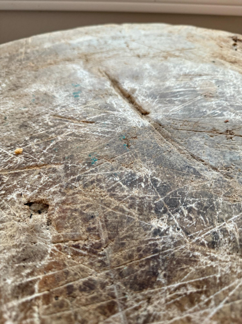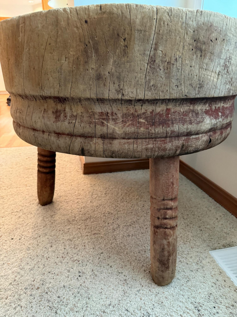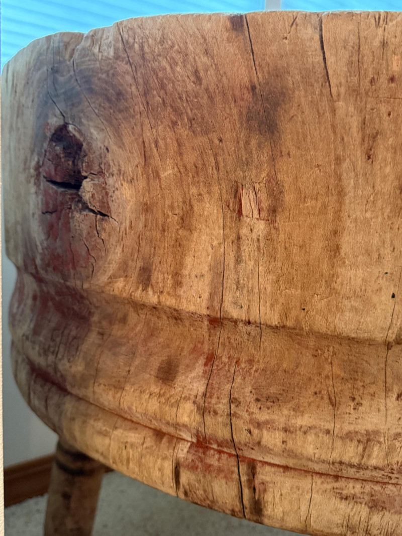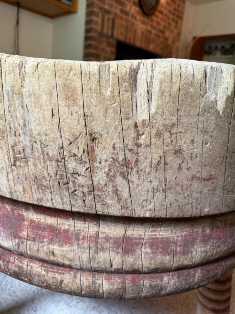 Antique 32” Round Freestanding Butcher Block The block itself is 12” thick.