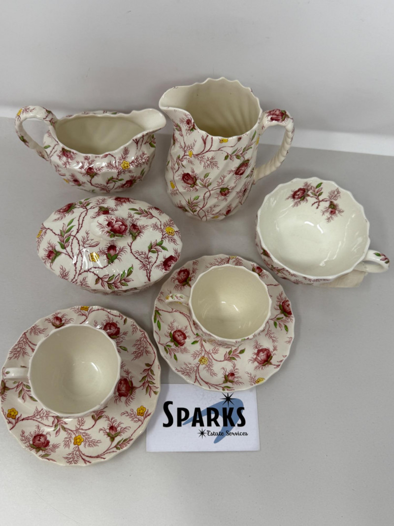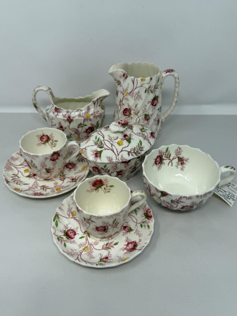 Lot # 3 - (8) Piece Spode “Rosebud Chintz” Tea Serving Set