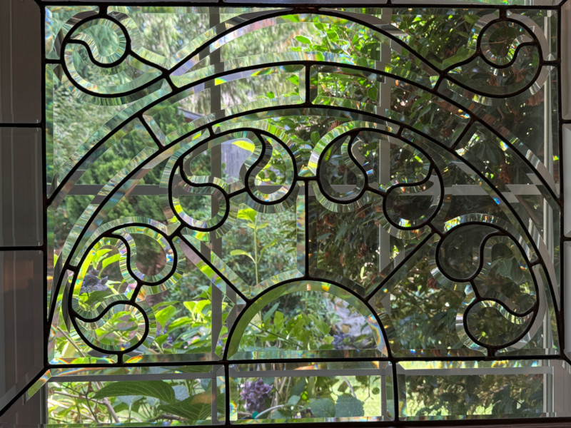 Lot # 10 - Wood Framed Hanging Leaded Beveled Glass Panel