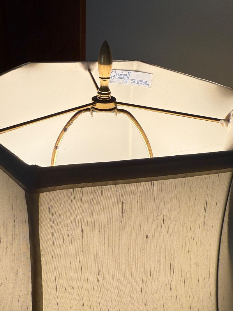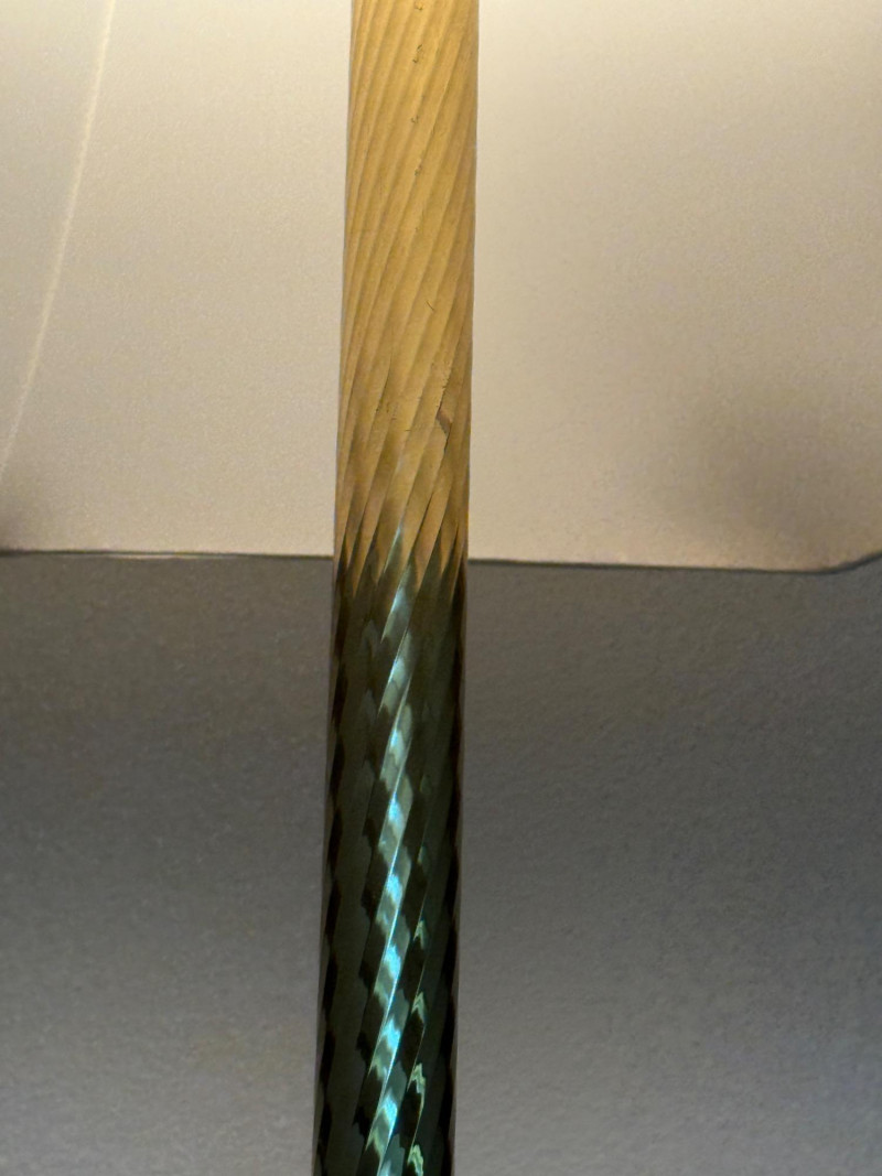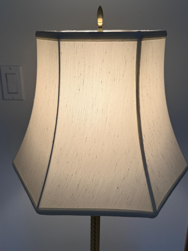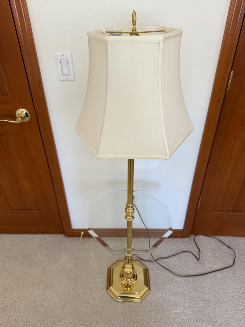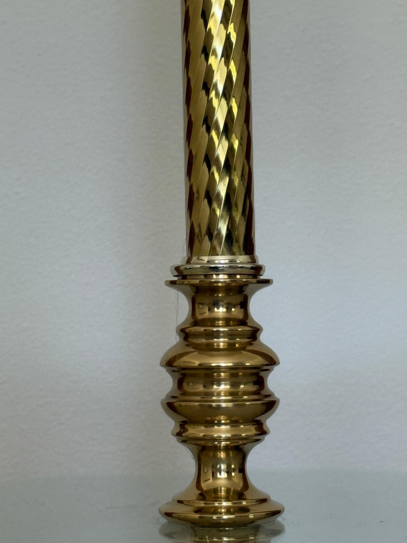 Brass and Glass 3-Way Lamp Table with twisted pole. 54” tall